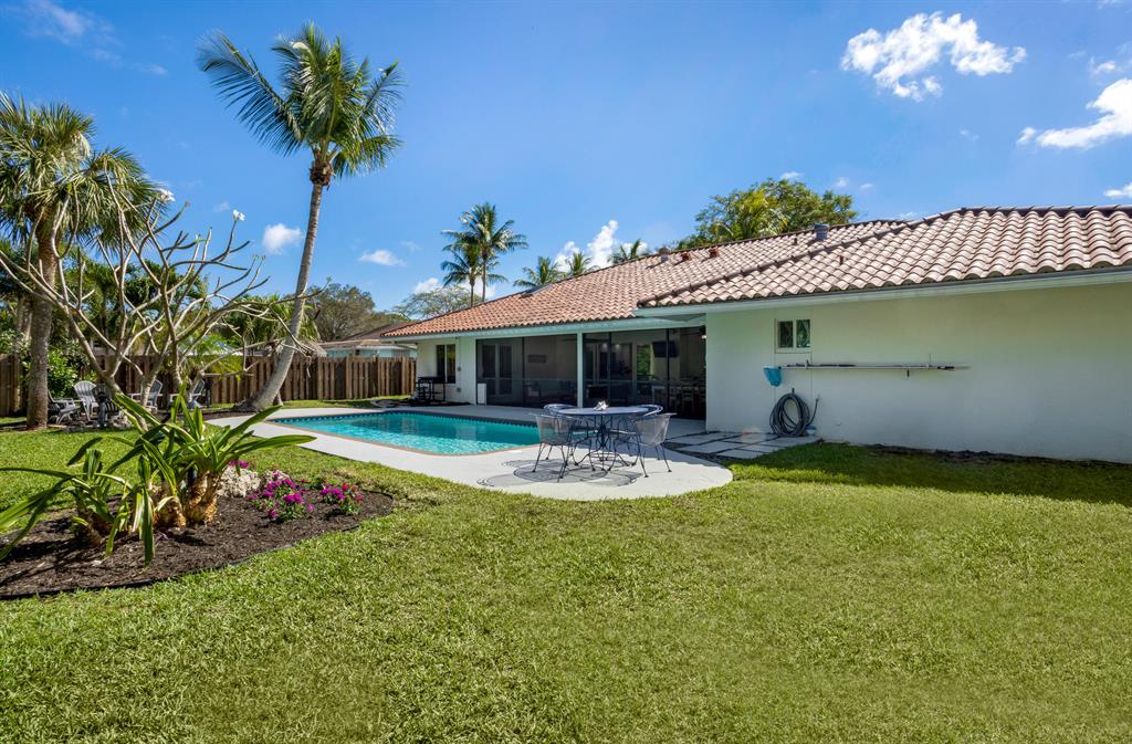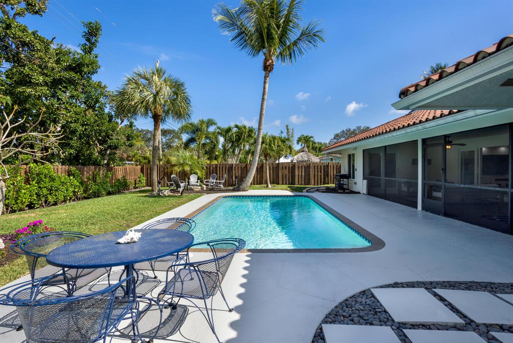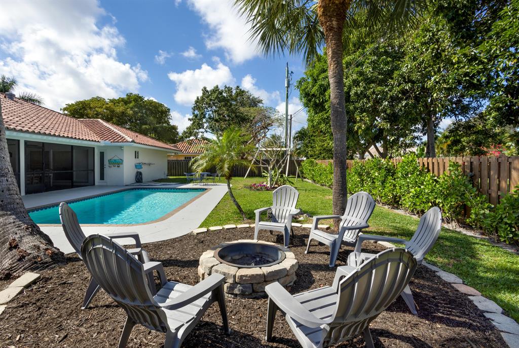 Quietly nestled on an expansive lot in the illustrious enclave of Palm Beach Farms in Boca Raton, this stunning four-bedroom, three-bathroom Coastal estate features striking oversized pool, built-in firepit, and a sprawling screened-in loggia, idyllic for enjoying the sunny South Florida lifestyle. With verdant tropical flora spanning the residence's front and back yards, this charming estate impresses at every turn.