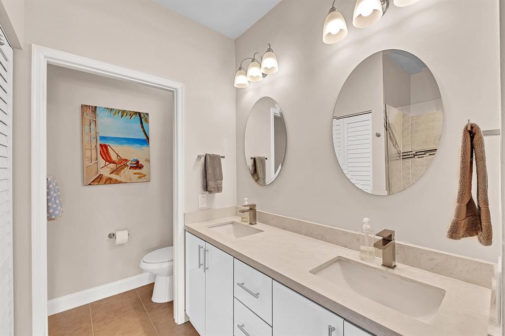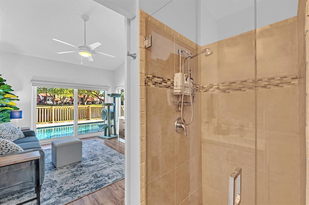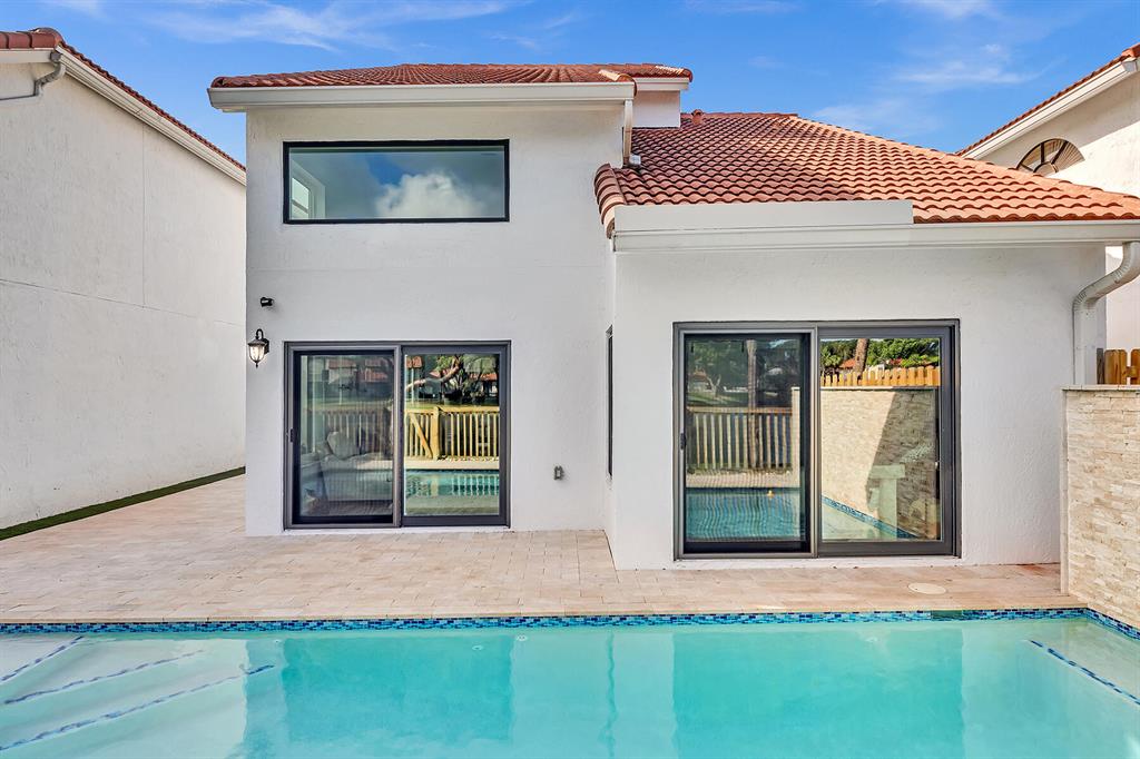 Beautiful lakefront pool home in the heart of Boca Raton. This home has it all. Newer pool (2019) with heater, marble patio and artificial turf in back. Custom kitchen done in 2018 with stainless appliances and quartz countertops. Volume ceiling in living room has incredible view of pool and lake. This home has 2 Master bedrooms with baths. One up and one down. The 3rd bedroom is located on second floor. There is a half bath on first floor. A large storage room off the 2 car garage leads to the patio. New air conditioner done in 2021 and new flatbed roof over garage just completed. Electric box and hot water heater replaced in Decemebr 2018. Vinyl impact windows done in 2021. Custom blinds throughout. May only lease for 12months. No short term leasing.