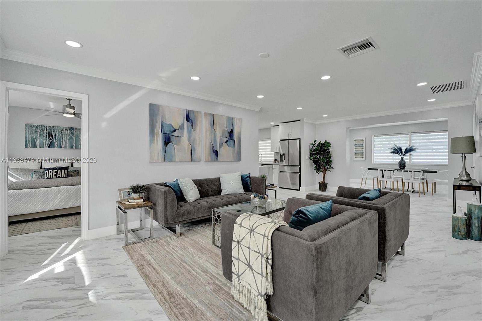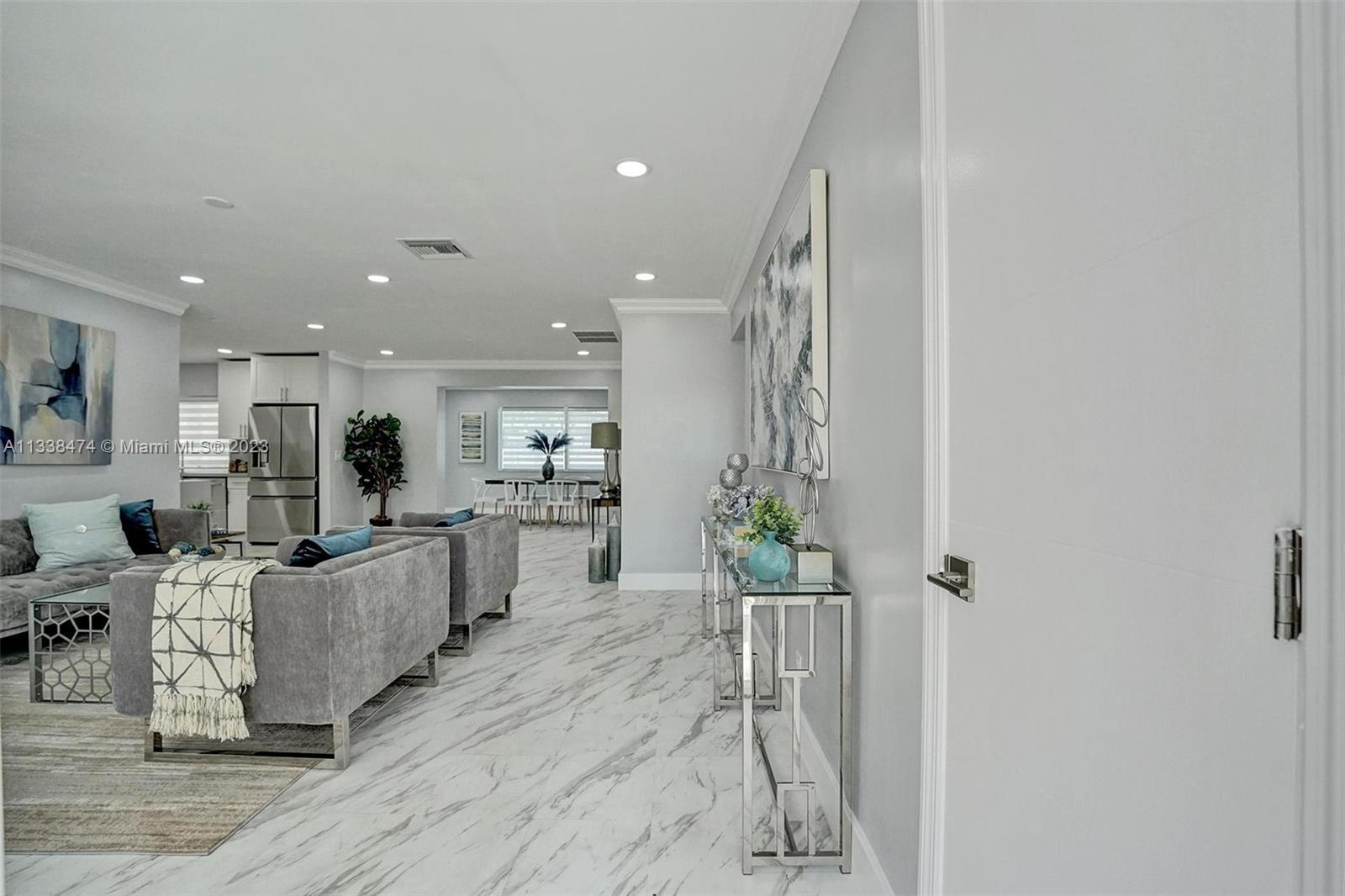Wow! Totally Brand New Modern Remodeled 4/2 in Hallandale Beach with private pool! House has brand new flooring throughout! New Open Kitchen w/ stainless steel appliances, white cabinetry and Gray Slate Quartz Countertops! All New Modern bathrooms with modern vanities and marble covered showers! House has hurricane impact windows throughout! New Custom Blinds! New Lighting throughout! Large backyard with private pool! 5 Minute bike ride to the Beach and 10 minute walk to House of Worship! This is the best deal in Hallandale Beach to get a brand new totally remodeled home with pool and a great price! Priced to Sell!!