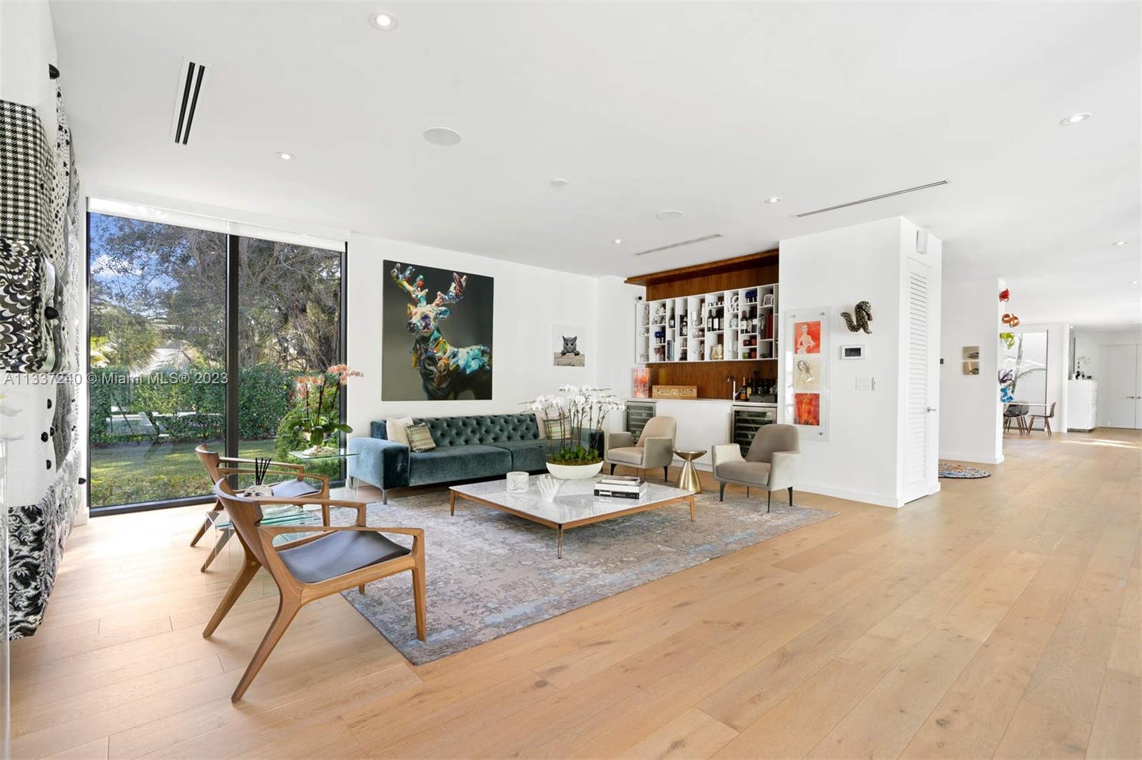 Unique, Modern, award-winning architectural masterpiece located on a quiet street in the heart of Pinecrest. This spectacular one-story home has six beds, 6.5 baths, and two separate office spaces. The finest finishes are welcomed by an expansive open floorplan overlooking the heart of the house: a heavily landscaped courtyard featuring an 80-foot-long pool. The home was designed by "Brillhart Architecture" with a structural system that includes steel columns but mainly pure concrete. Smart home with a full-capacity generator, outdoor kitchen, and a state-of-the-art tree house. The guest bedroom and maid's quarter are detached and have separate entrances. An architectural experience that you must see to appreciate genuinely.