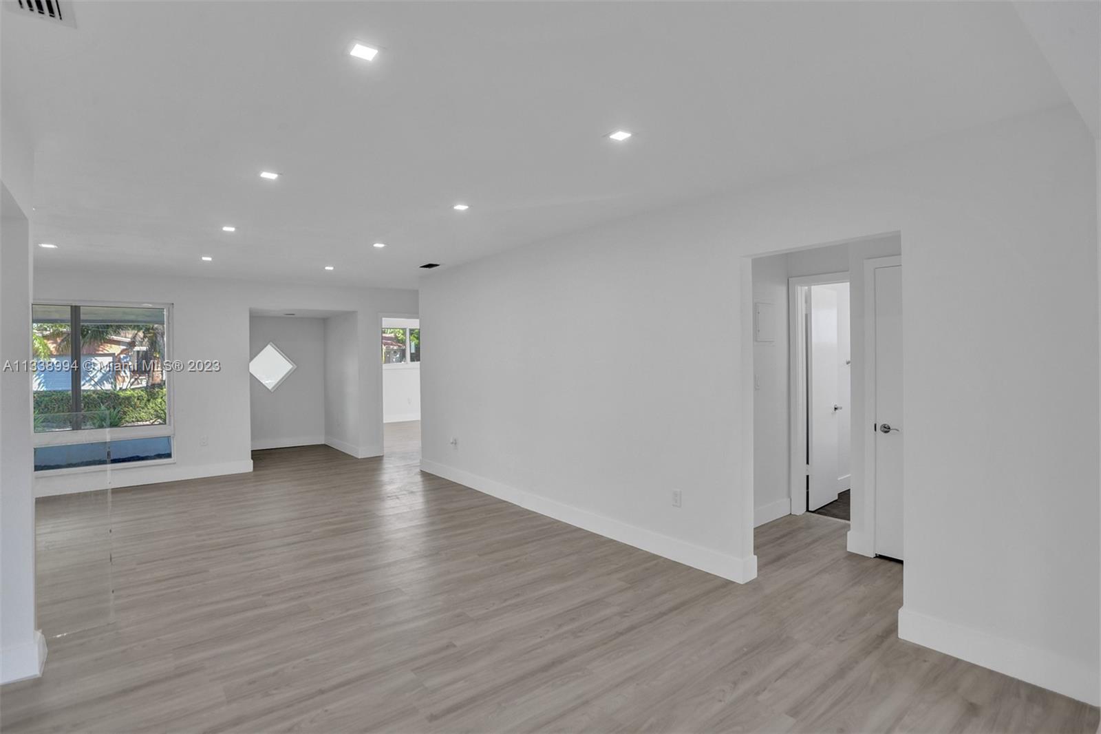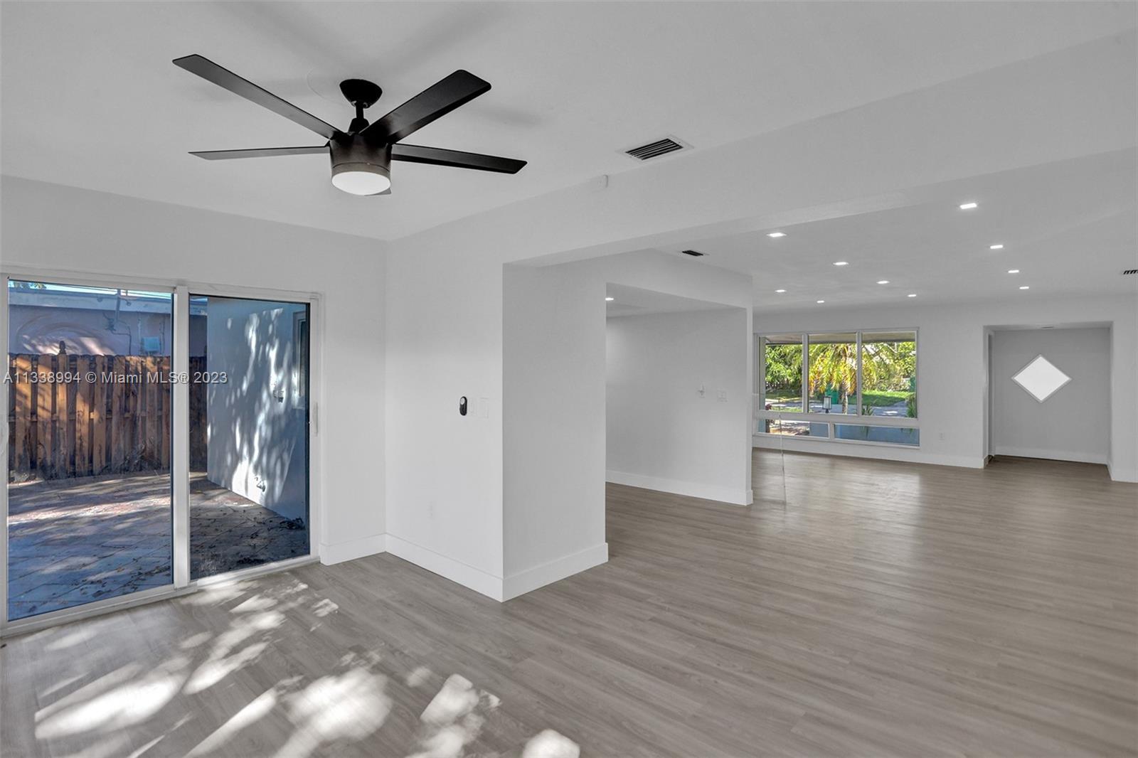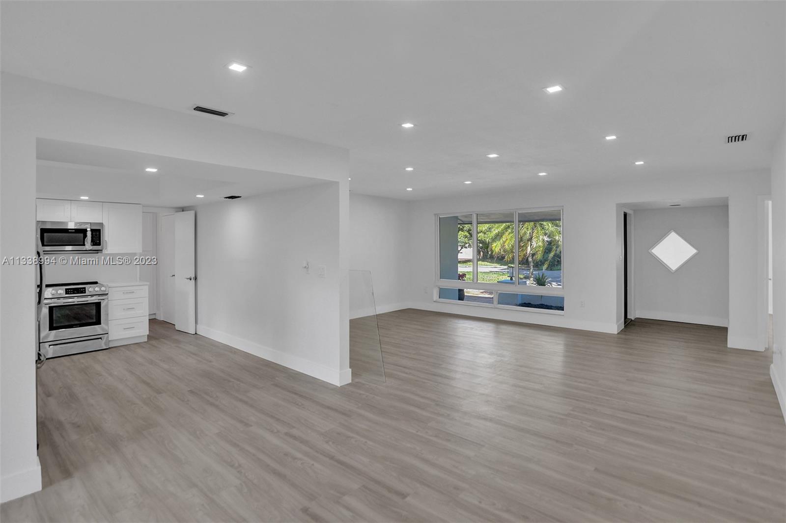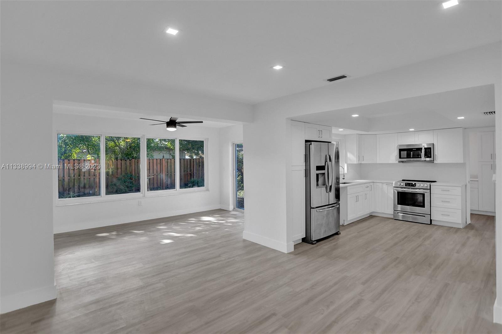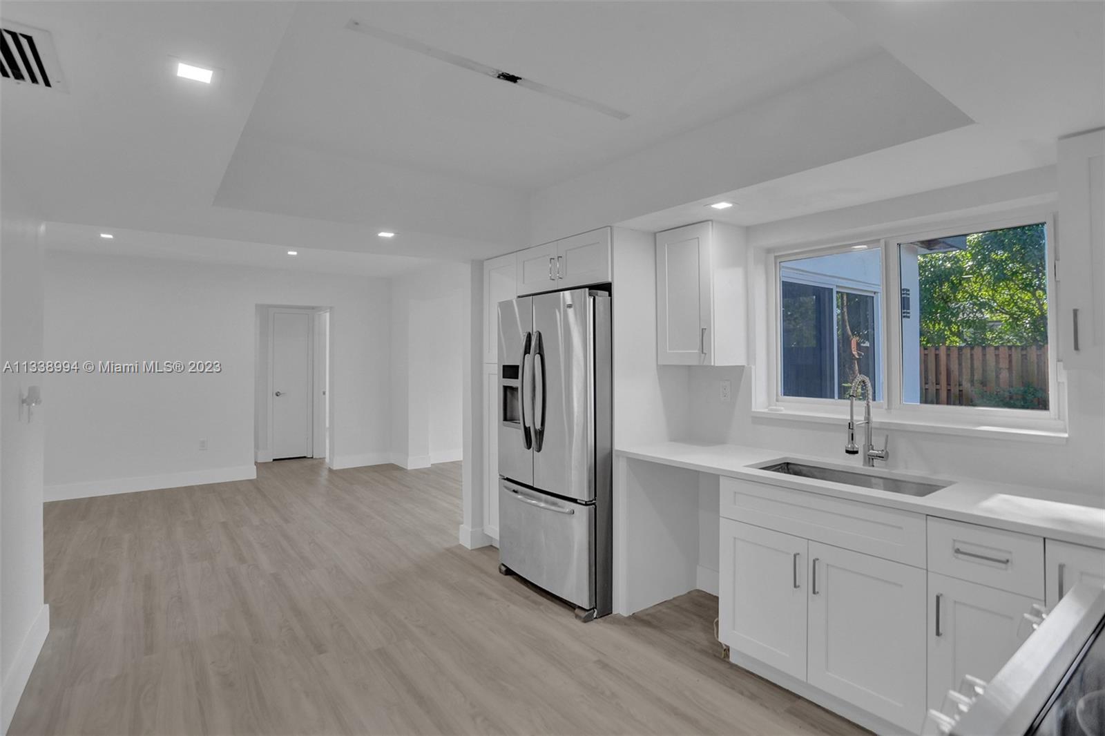 Completely remodeled 3/2 home. Open floor plan, white modern kitchen cabinets & Quartz countertop, stainless steel appliances, laminated floors, Impact windows, Large Family room with plenty of light overlooking your own private backyard and with plenty of room to build a pool. Spacious Master bathroom with large closet and updated bathroom with shower. Large utility room for Washer an Dryer (included but not installed) Circular driveway and one car garage. NEW ROOF 2022. NO HOA fees!!! Make this beauty your forever home.