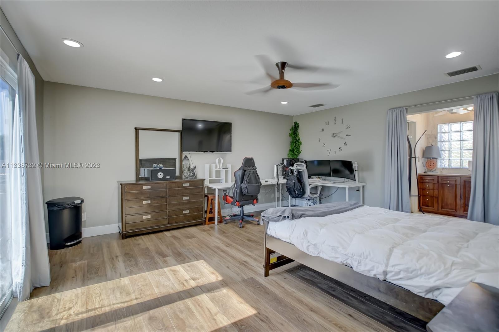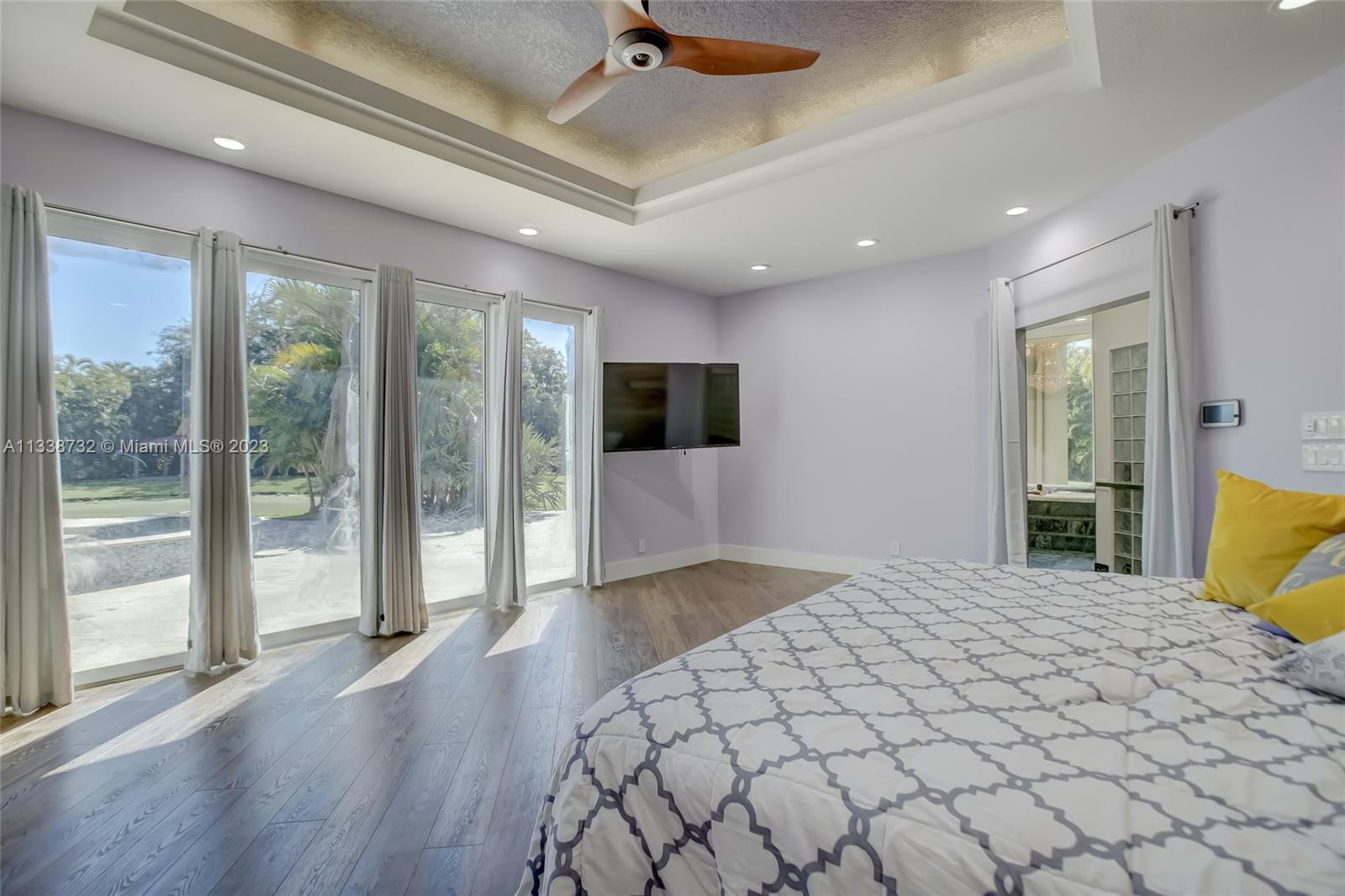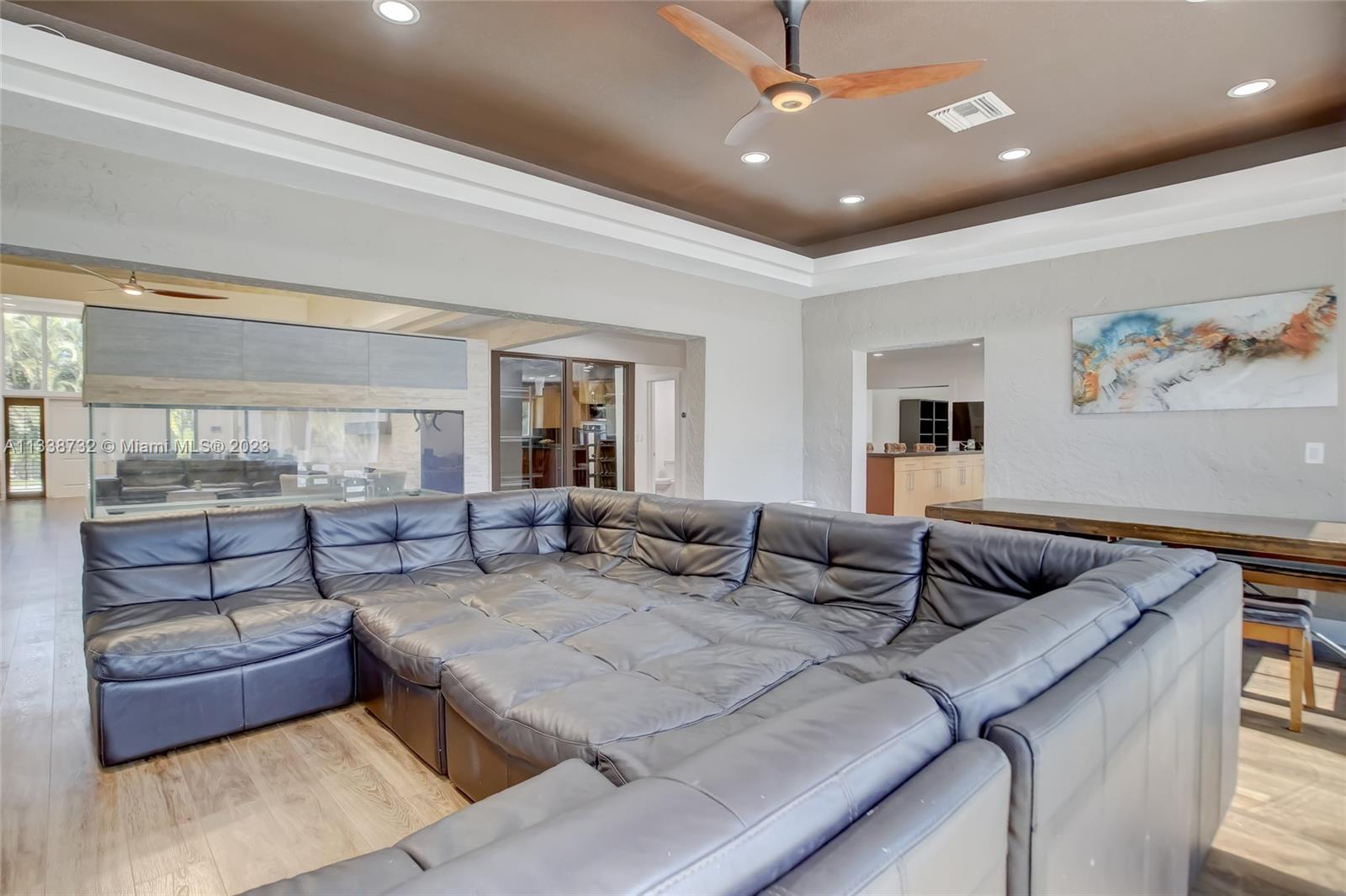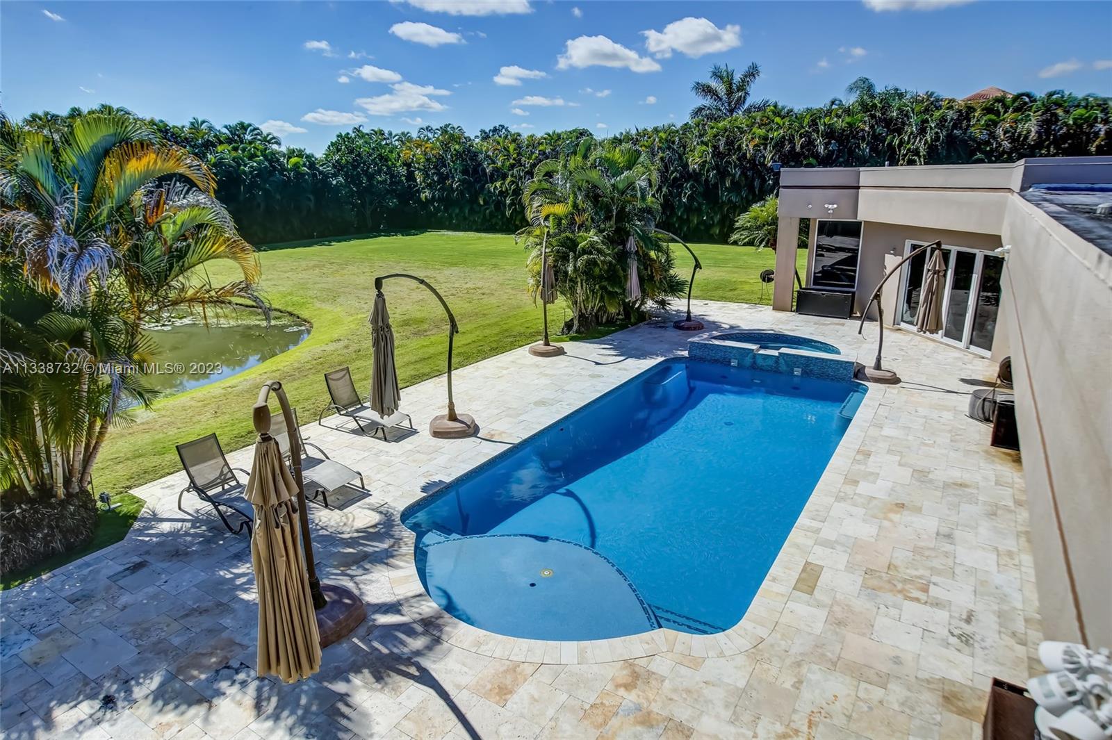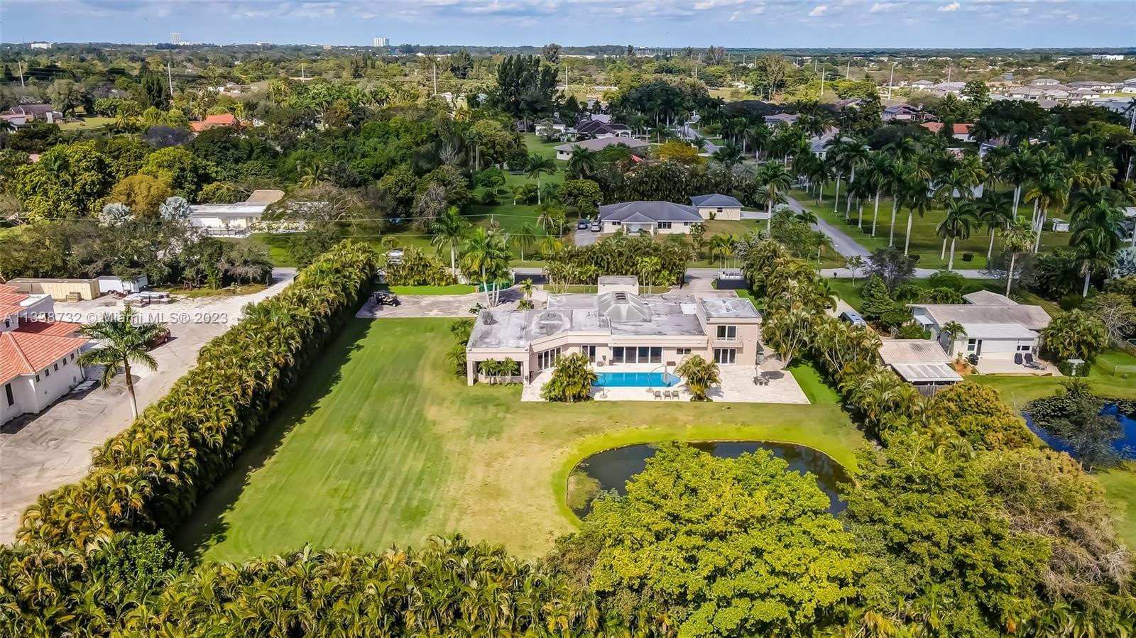 Private gated estate is an entertainers dream home on 1.5 acres of land in the heart of Davie. 5/3.5 baths + a bonus room that can be an office or gym featuring neutral laminate flooring in all main living areas and bedrooms. Huge open spaces including oversized great room with stone wall, and fireplace. Eat in kitchen with extended snack bar, granite counters, and wood cabinets. Expansive first floor master suite with 2 big walk-in closets, and master bath that features dual sinks, soaking tub, and step-in shower. Big secondary bedrooms with redone bathrooms. Amazing salt water pool and spa surrounded by endless travertine pavers. Impact windows except for the glass block. Expansive driveway for all of your cars, toys, boats, or RV. No HOA, minutes from 595 and 75.