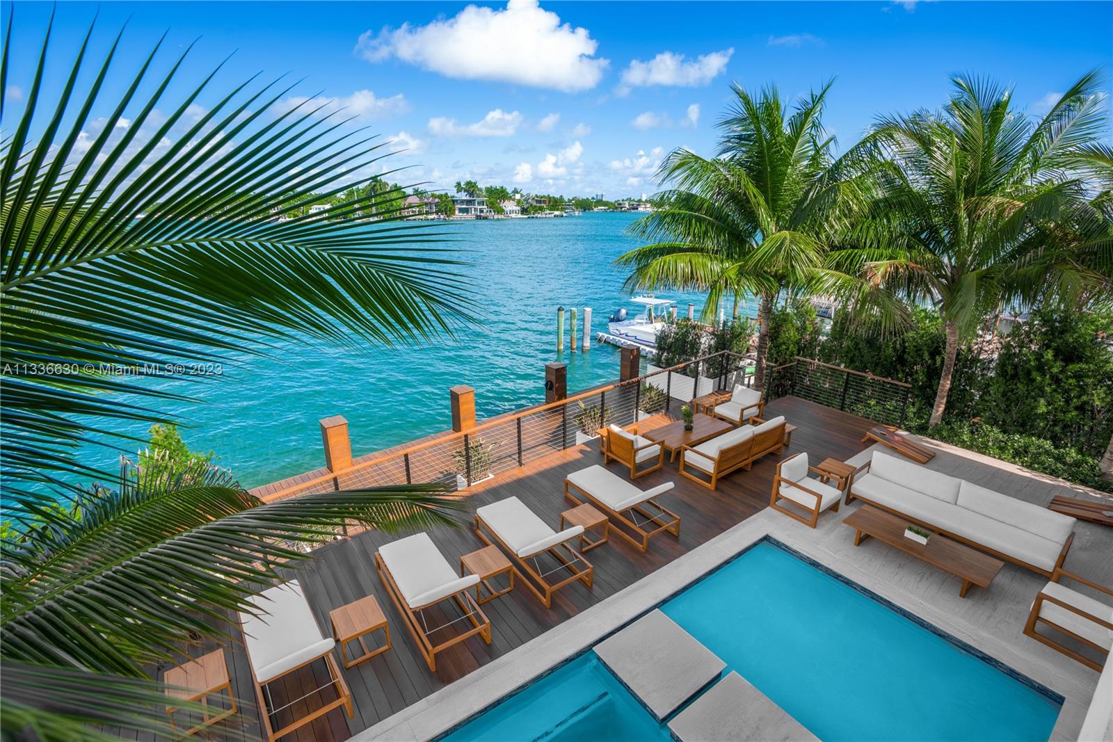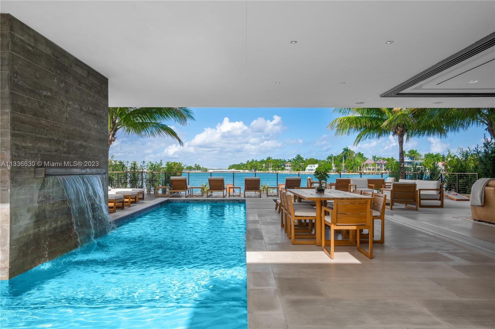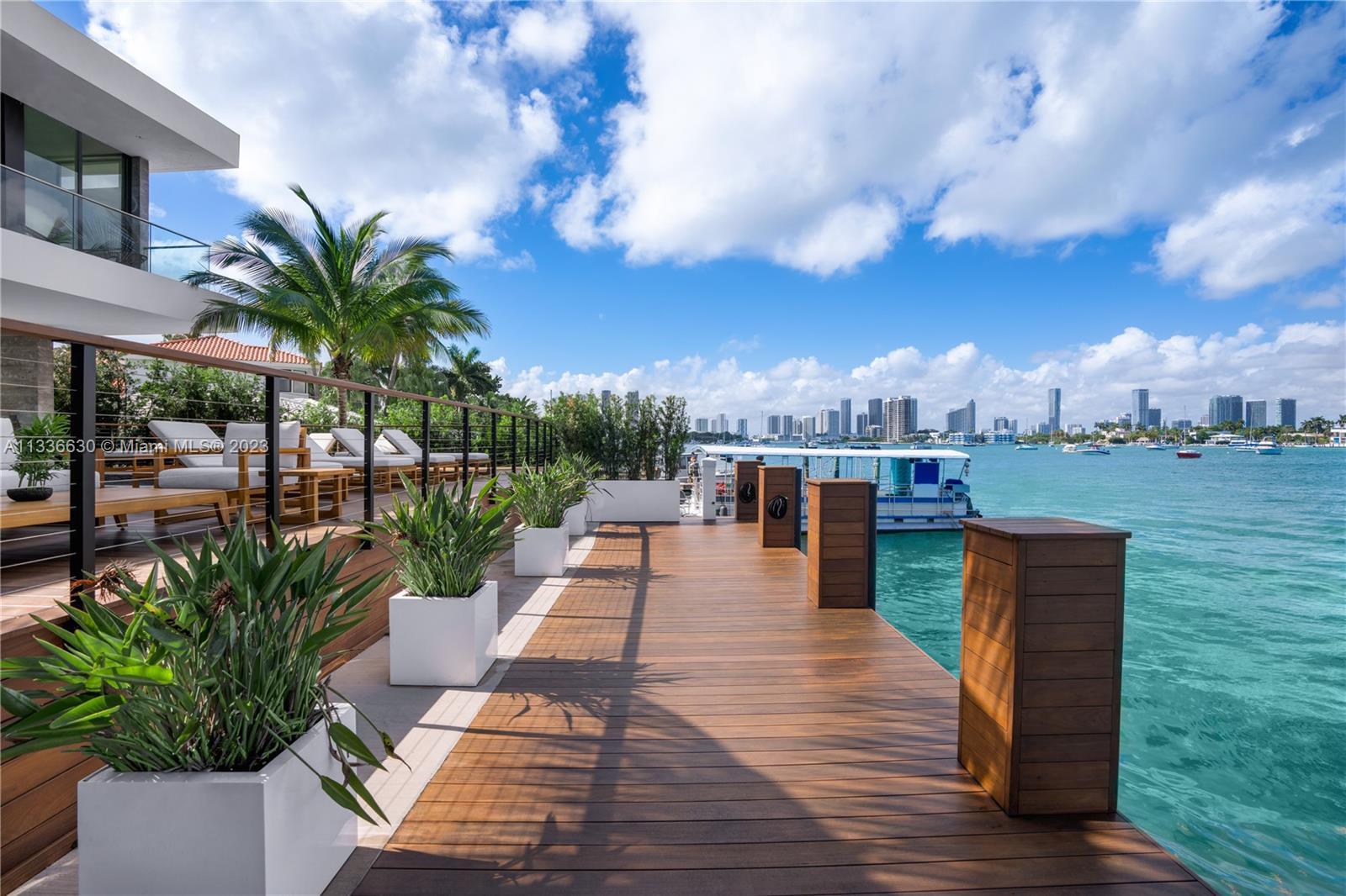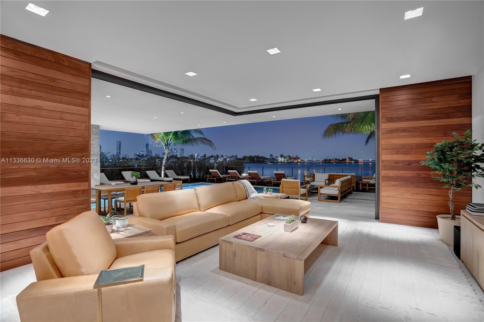 Stunning tropical modern home with westerly sunset views located on prestigious Hibiscus Island with 24/7 police guarded gated entrance. Wide bay Biscayne views upon entry to this luxury home, masterfully designed in 2017 by award-winning architect Choeff Levy Fischman. Indoor/outdoor living on ground floor is perfect for entertaining with its open dining and family areas, with five bedrooms and office area, spacious master bedroom with dramatic water views. Featuring custom Italian kitchen, oak wood floors, Crestron smart home system, floor to ceiling windows and a two car garage. New Ipe rear deck decking with expansive relaxing outdoor area, and lush landscaping provides resort style oasis rear yard including a salt water pool and spa, and private dock.