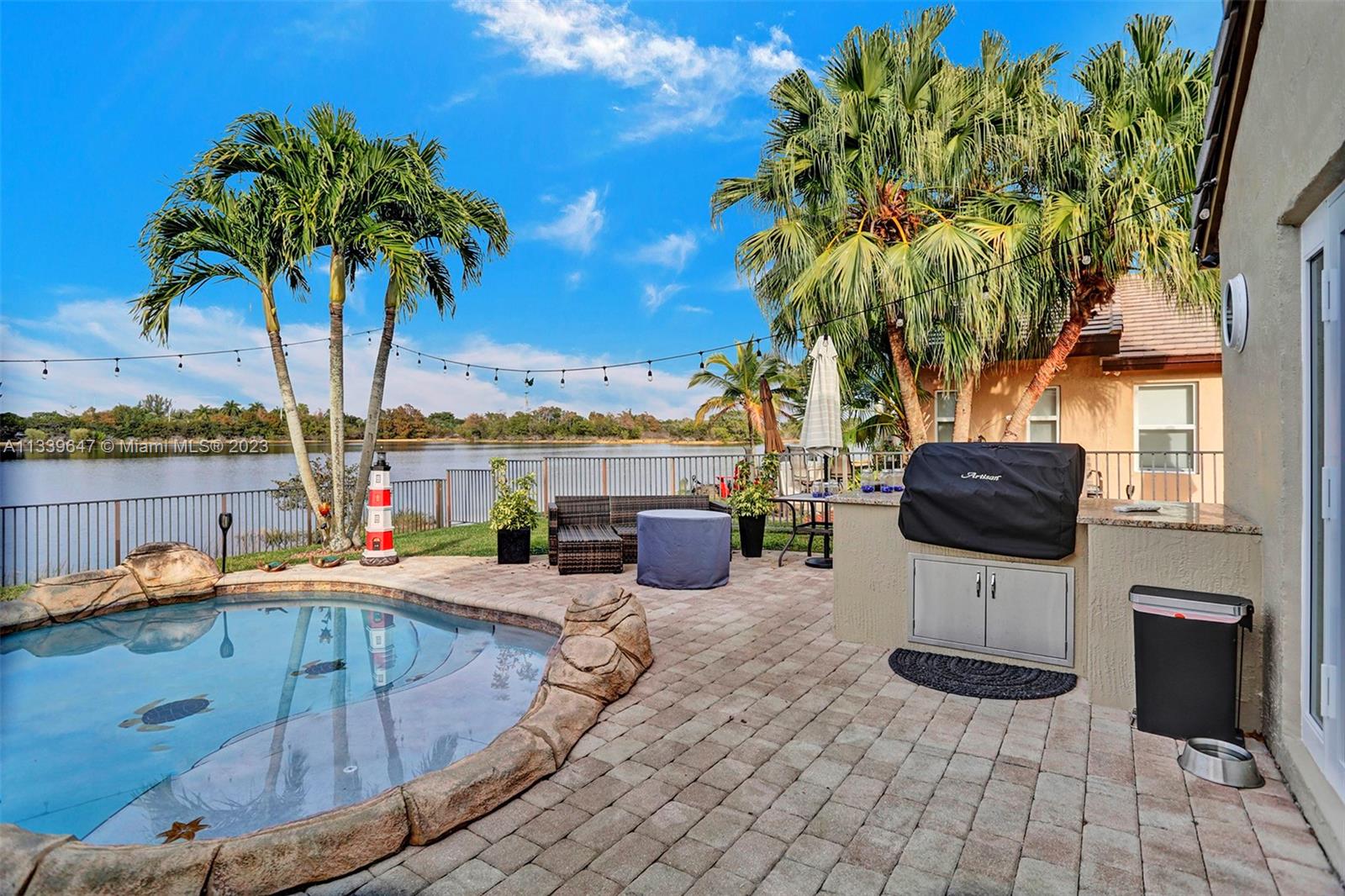 Completely and recently updated gorgeous 3 bed 2 bath home with lakefront views! Remodeled kitchen with granite countertop and brand-new stainless-steel appliances (fridge, stove, microwave, dishwasher) and washer/dryer. Updated bathrooms, spacious living and dining room with new valances and window covering, AC, smoke detectors, house surge protector and lights, new storm windows. 2 car garage, large screen tv with sound bar in patio for entertainment and a pool with recent salt water pool enhancement and BBQ outdoor kitchen. Beautiful and well-maintained landscape. Nearby to top schools, hospitals, shopping malls and restaurants. Open House this Sunday (2/12) @ 12-2pm.