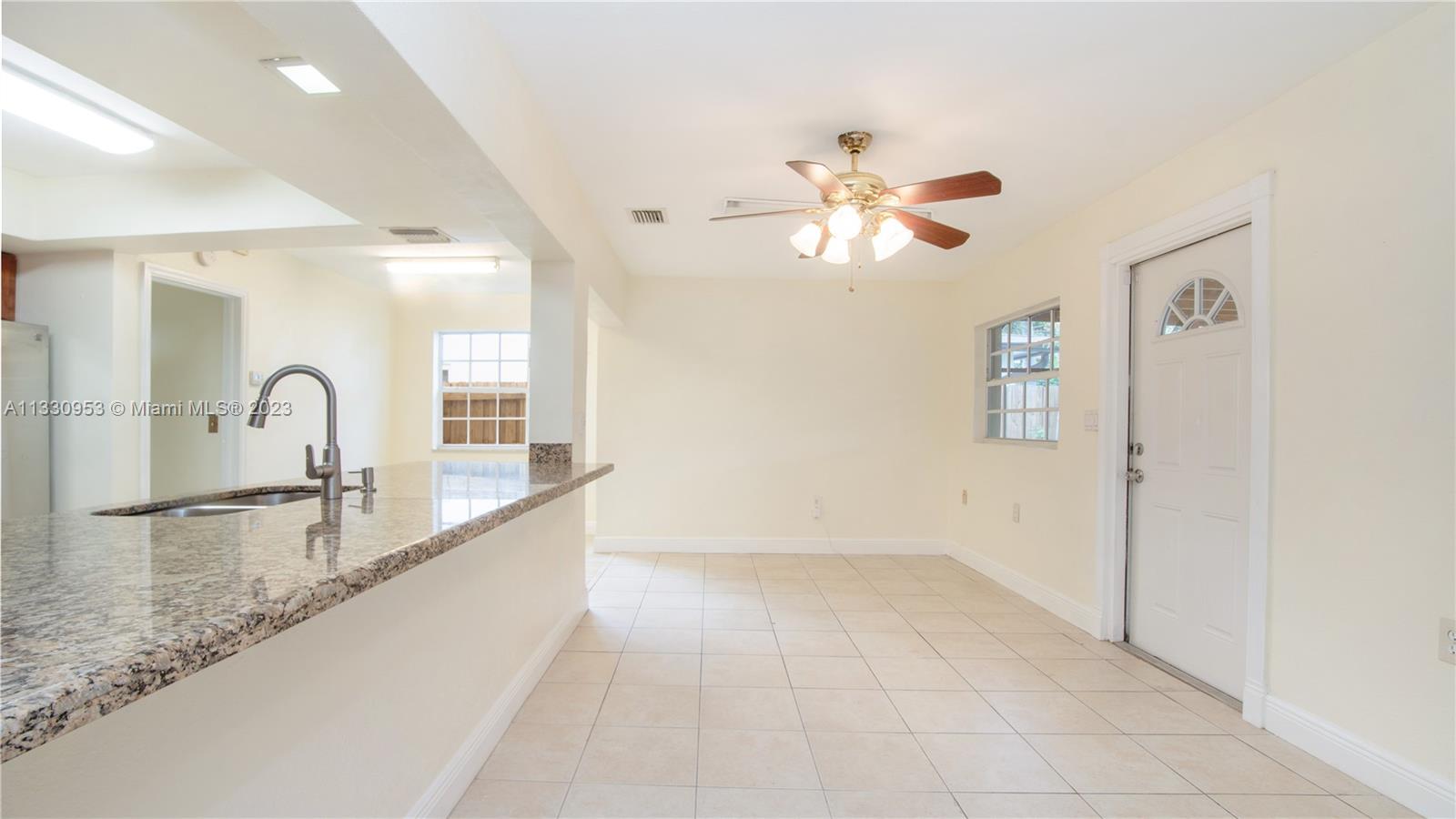 Spacious beautiful 3 beds plus a den which can be used as fourth bedroom and 2 baths. Quiet and most desirable area in Miramar. Fully upgraded eat in kitchen, stainless steel appliances, fully tiled, separate large laundry room, circular driveway, separate family and living rooms. Covered, large screened and covered patio, fenced backyard with fruit trees and a big size storage room, digital water heater A/C one year old, washer / dryer 2 years old, Roof is 1.5 year old.