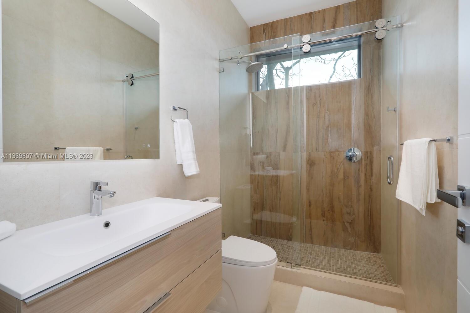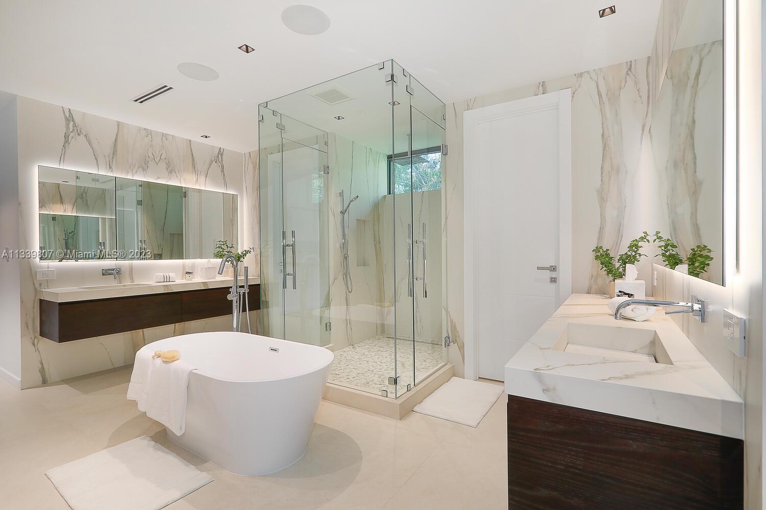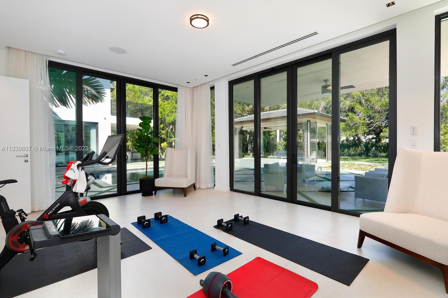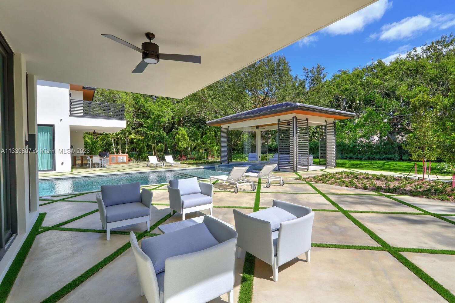 This gated North Pinecrest estate sits on a 50,529 sqft lot & has a total of 12,124 sqft, w/ 8 bedrooms, 9.5 bathrooms, theatre, gym, office, 3-car garage & a double carport. You are welcomed by the grand entrance surrounded w/ beautiful coral rock & double water display. The home features a mix of modern & traditional design elements, w/ an emphasis on sophistication & elegance. The home features Peruvian teak wood throughout the high ceilings, which adds warmth & character to the space. The Italkraft kitchen is equipped w/ Fisher & Paykel & Wolf appliances. All bedroom closets & bath vanities done by Miacuccina.The outdoor spaces include a pool, gazebo & summer kitchen, surrounded by a tropical setting. Includes: gas generator, wine display, Creston automation system & 2nd family room.
