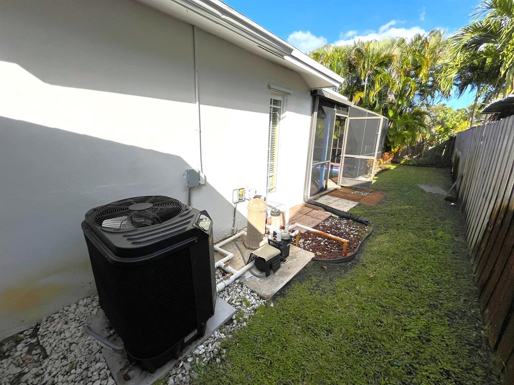 This 3 bed/2 bath centrally located Davie home has an enclosed heated pool with 2 cabana bathrooms and a 2 car garage. Impact windows and doors, granite counter tops, crown molding and much more.Highly desirable school district, near Publix, Costo and all major shoppings and highways. No HOA. Large 8ft x 15ft shed on backyard. Roof is 20y old, AC unit is 10y old.