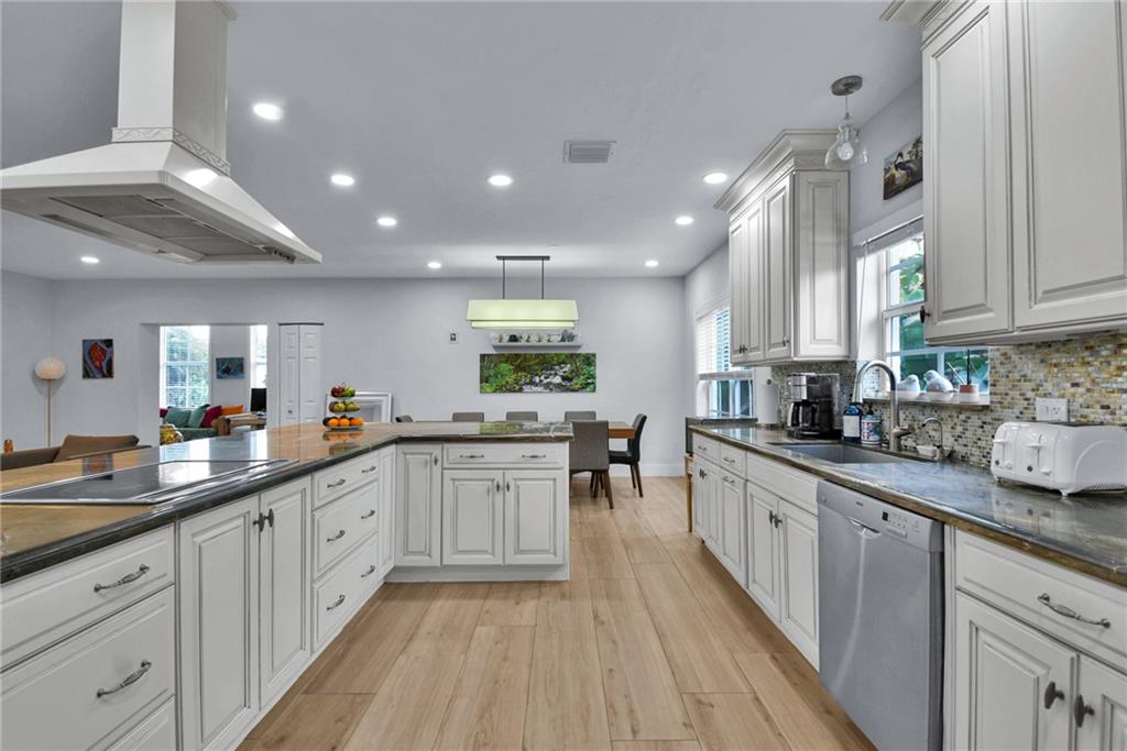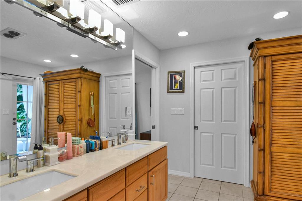 Foyer entry with volume ceilings, Custom Kitchen with wood cabinetry, granite counter tops, stainless steel appliances. Recessed lighting, Florida room with volume ceilings overlooking pool patio entertainment area. Spacious Master bathroom with spa tub, separate shower and dual sinks, Impact windows and doors, Zoned central a/c, Located one mile from ocean, Large pool patio entertainment are with tropical landscaping. Fenced yard. Roof is 15 years old, One a/c unit is brand new and the 2nd unit Compressor is New,