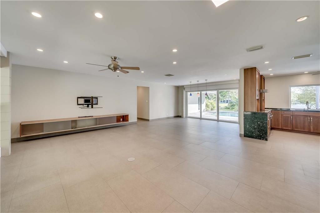 This home boasts all the adjectives you're looking for: a Spacious 4 bed 2 bath, with upgraded everything. Open and bright, some highlights of the home are the stunning water front view, 3 tank-less water heaters for instant hot water throughout the home, full impact windows and doors, 2 HVAC 2019 and 2021, flat roof 2017, main tile roof 2003, all in impeccable condition, and immaculately maintained. Beautiful modern bathrooms, high end porcelain floor sprawling throughout. When you finish in the pool and need a break from the serene view, rinse off in your outdoor shower, and maybe pop in to your bonus room equipped with wet bar, which is right off of your fully updated custom kitchen. Recent wind mitigation available. Sprinkler system just recently redone.