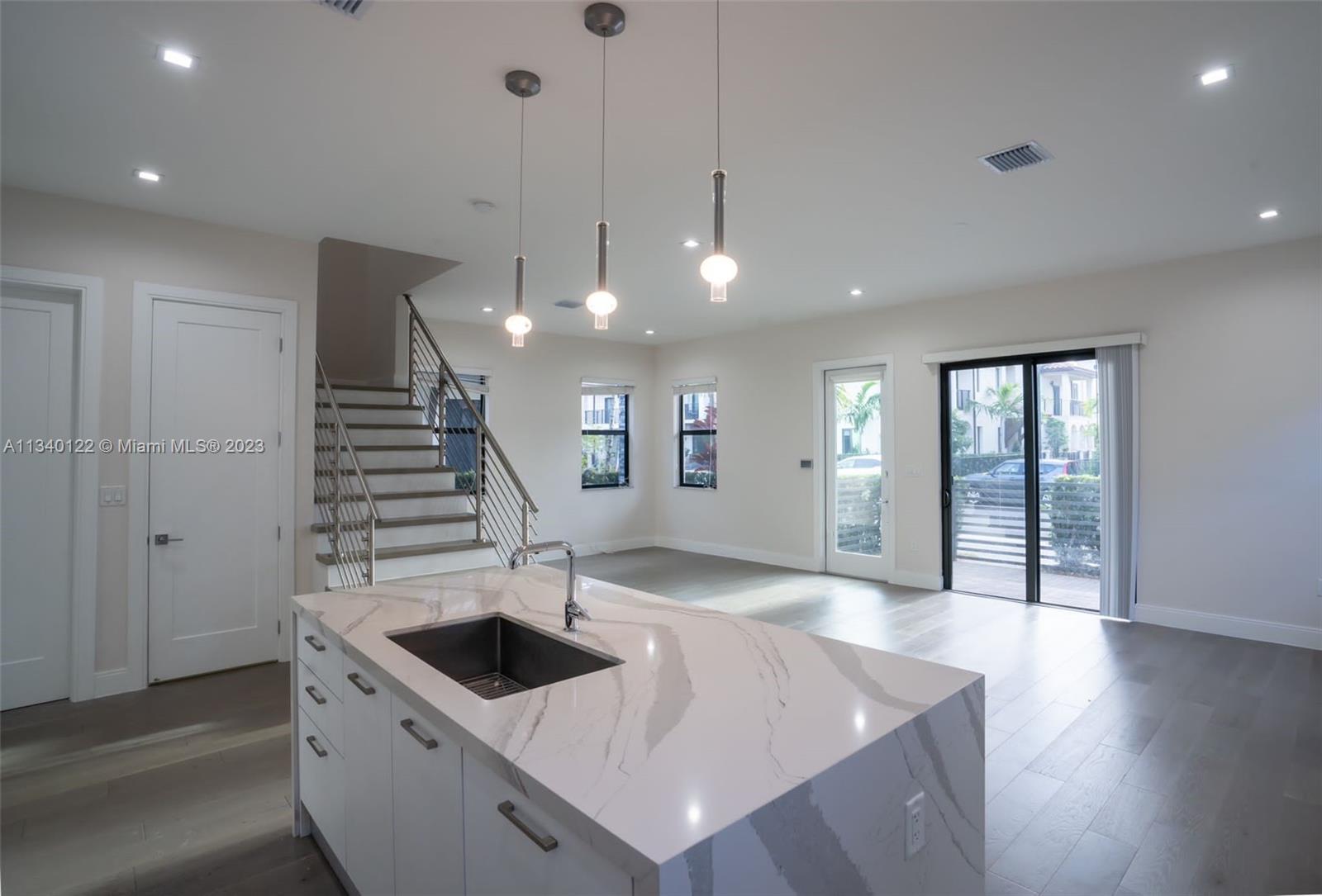 Beautiful home in the Community of Downtown Doral Canarias. Corner single family home with high ceilings, brand new 3 bedrooms & 3 and 1/2 bathrooms, a beautiful designer kitchen, with Energy Saving Appliances, an Island with quartz/granite counter top, smart lighting, impact windows & doors, and smooth finished walls. It also has a very convenient laundry room in the second floor with cabinets and a sink. This community offers amenities with a resort style living, pool, a full amazing Gym, meeting-ballroom facilities, cover basketball area and Jogging track. Child play areas and more! Walking distance to the amazing Parks, Restaurants, Bars and Stores. Top Rated A+ Schools.