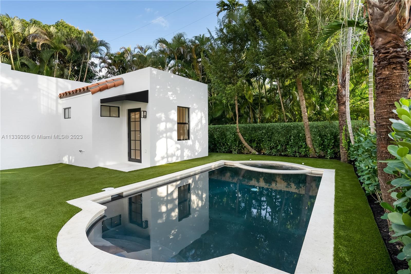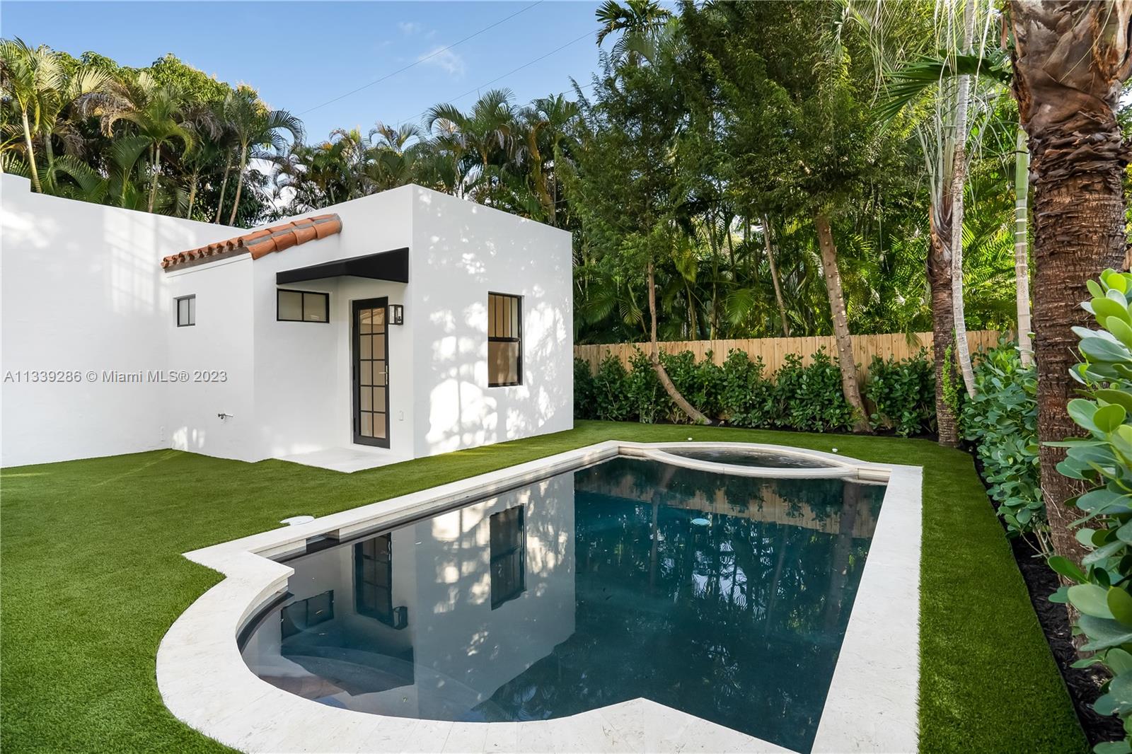 Stunning 1928 Morningside two-story home with a detached guest cottage, garage and pool. Impeccable renovation offers state-of-the-art features while retaining classic architectural style. Quality shines through in every detail: natural travertine floors, black-frame windows, designer baths, pro-grade kitchen with illuminated wooden cabinets and marble backsplash. The open floor plan is perfect for entertaining. Upstairs bedrooms have garden views and a private patio. Enjoy Morningside's prime location with access to recreation and nearby Miami Design District, airport, and beaches. Close to beloved schools, supermarkets, eateries, farmer's market and waterfront parks. A rare opportunity to live in historic charm with modern amenities. A beautiful & unique place to call home.