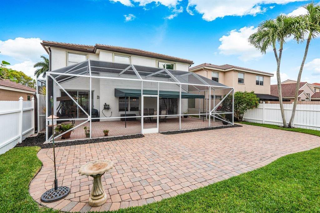 Welcome home to gated Symphony Bay in Boca Raton, FL. This spacious 2,500+ AC sqft 4 bed, 2.5 bath 2-story home features a BRAND NEW ROOF! Brand new Rain Gutters! House freshly painted in December 2022. The smart first floor plan features formal living and dining areas, spacious kitchen + pantry + eat-in that opens to the living area. Dual sliding doors open to a large paved and screened backyard with a newly canvassed awning that creates an ideal indoor/outdoor living setup. All 4 bedrooms are upstairs. Double doors open to the large primary suite featuring walk-in closets, dressing area, and spacious ensuite bath with separate tub, shower & dual sinks. The home is sited just a few doors away from the gorgeous & updated community amenities complex.