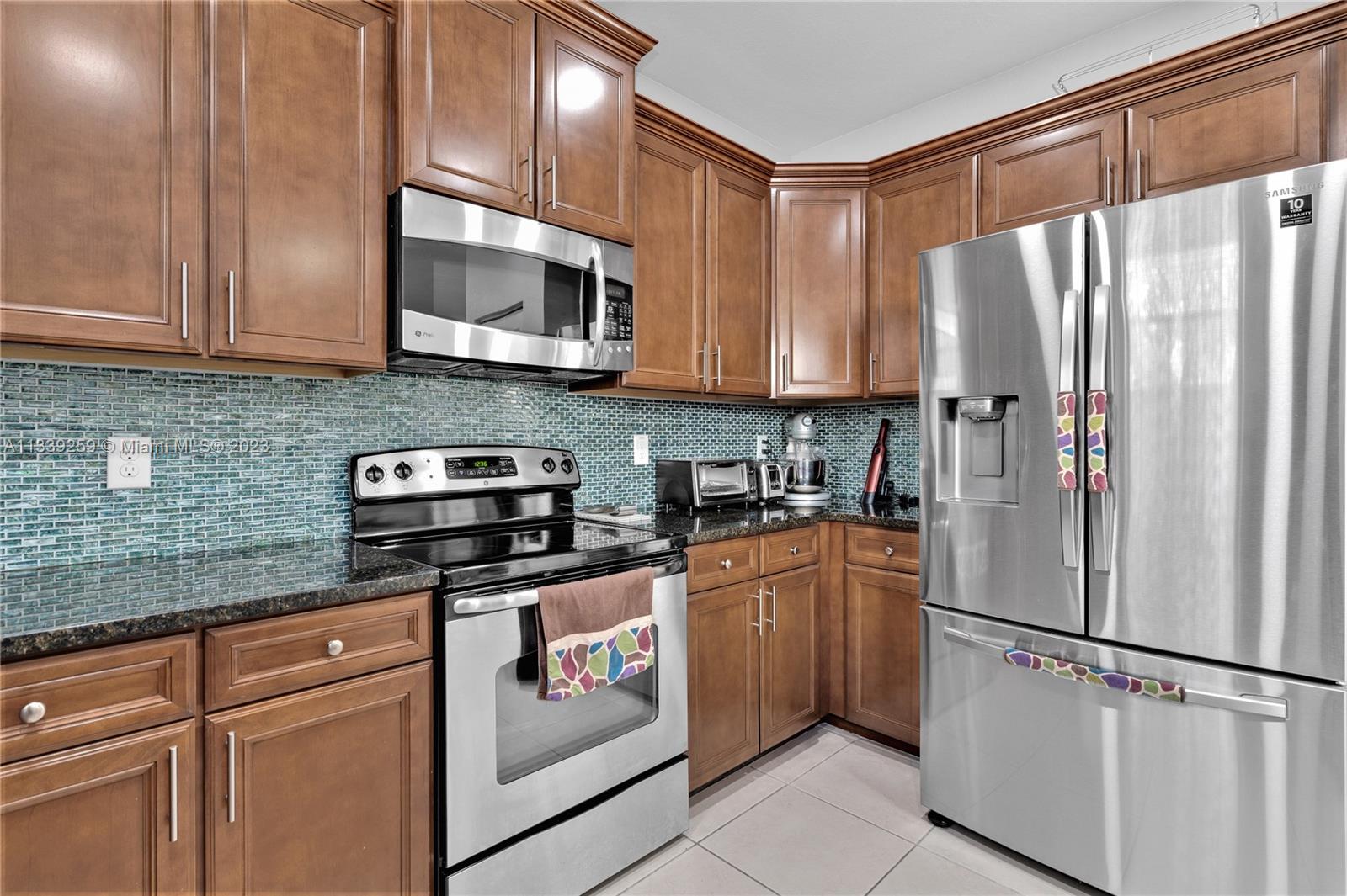 Beautiful corner townhouse in the gated community of The Isles at Grand Bay in Doral! This amazing townhouse offers 3 Bedrooms, 2 1/2 Bath and great patio for entertainment. Kitchen has granite countertops and a beautiful emerald green colored backsplash. Stain Steel appliances, washer/dryer(on second floor) and water heater all in excellent condition dated 2020. The bathroom downstairs has been remodeled and the walls are knock-down finish. Modern Vinyl/ laminate flooring starting from stairs and all throughout the second floor including bedrooms. Master bedroom offers oversized walk-in closet! One car garage. THIS IS A MUST SEE!!!! Amenities: Clubhouse, community pool, tennis court, basketball court, gym. You can enjoy biking or jogging in a very peacefull community.