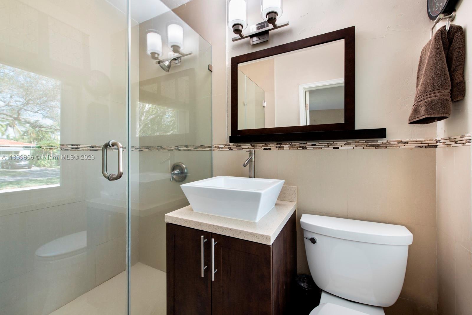 This turn key home is ready to be yours! Amazing entry captures that wow factor as you see through the home to the backyard oasis, complete with patio, sun drenched pool, and mature mango tree. In 2018 the sellers added a large family room, powder room, laundry room, and a new primary bedroom with double walk-in closets. French doors from both the primary and the family room lead to the pool/patio area. Spa-like primary bath with double sinks & oversized shower. Hardwood and porcelain tile floors throughout. This home offers two ensuite bedrooms for ultimate living flexibility. The 1½ car garage includes work bench and built in cabinets. All impact windows with custom window treatments, electric fireplace, tankless water heater, and two zone a/c all in 2018. There is more!!