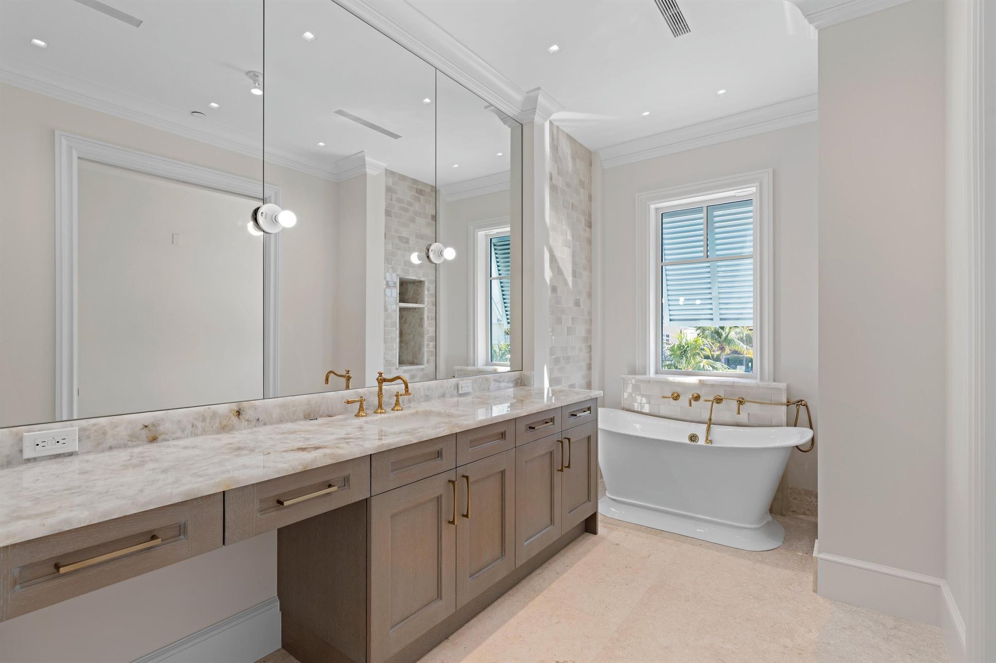 Brand new, never-before lived in home located in the center of Palm Beach! Spanning over 5,500 total square feet, this 4-bedroom home features gorgeous finishes such as hardwood and shell-stone flooring and a custom Downsview kitchen with Sub-Zero & Wolf appliances. A stunning floating staircase leads to the second floor which features a large primary suite with dual bathrooms & a large terrace, as well as three guest suites, all with ensuite bathrooms. Outdoors you'll find a spacious covered patio with a built-in summer kitchen, a large swimming pool and spa and a cabana bathroom.