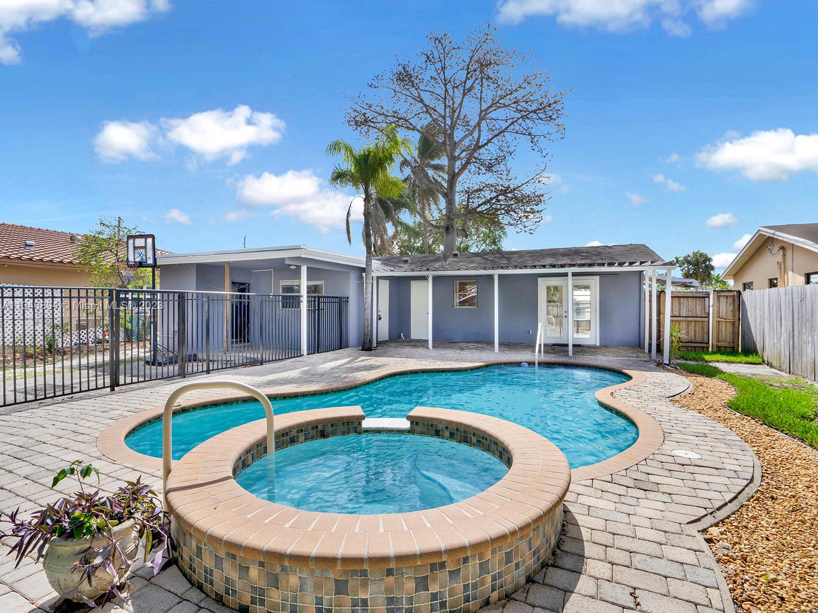 GORGEOUS HOLLYWOOD HILLS POOL HOME!!! This home features 3 beds 2 baths, a pool & parking space for your Boat/RV! Well-maintained property freshly painted inside & out! The kitchen features an open floor plan, a farmhouse sink w/a view overlooking the sparkling pool, stainless steel appliances & wood cabinets! Tile &Laminate flooring throughout! The master bedroom features a girls' dream size closet, It's Huge! 3rd bedroom can be used as an adjoining room off the master for an office/ den, it also features an exterior door entrance for a potential studio apartment. Backyard feat. a covered patio, a fenced-off pool area, & separate concrete slab access from the alley to pull in work vehicles/boats, etc. Sparkling blue pool has a built-in spa and fountains with a beautiful brick paver deck!