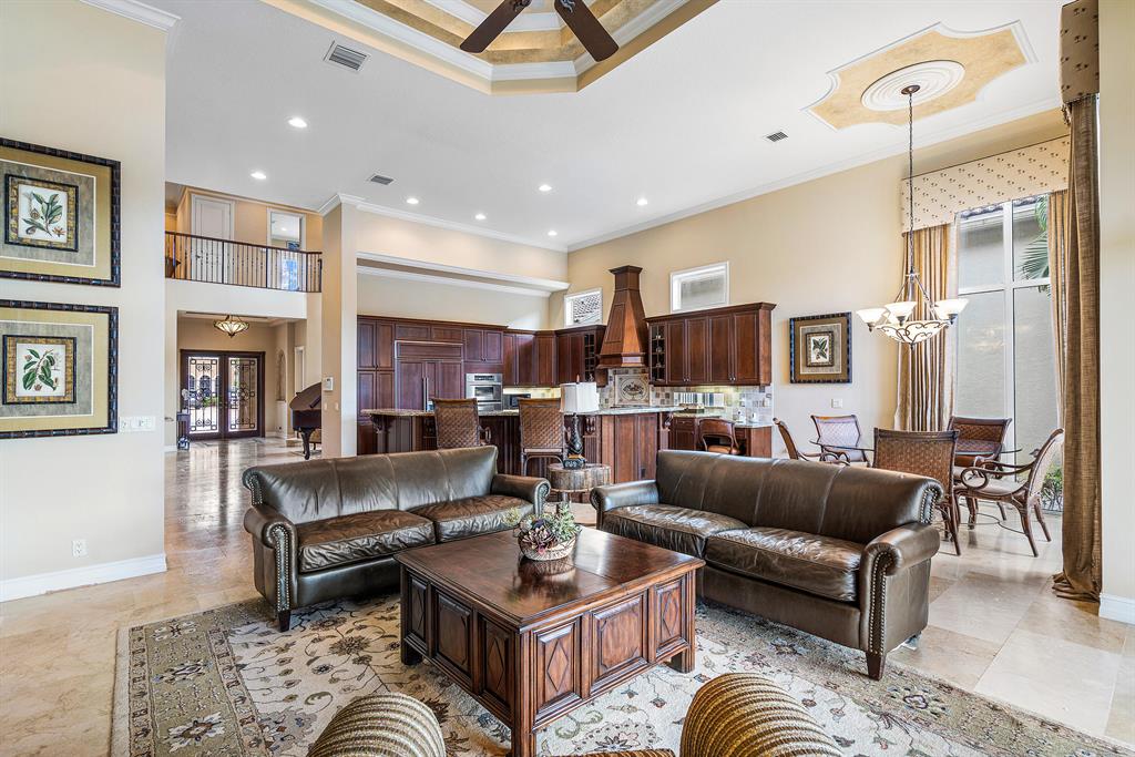 Welcome home to one of The Oaks' admired models, the Cordoba V. Set on a serene wide lake lot, this estate features a primary bedroom & theater w/over 250K in upgrades down, 4 bedrooms plus loft up, and 4 full and 2 1/2 baths. This home has special builder upgrades & architectural details thru-out, incl. marble floors in main living areas, gourmet chef's kitchen w/ granite countertops, Sub-Zero refrigerator & Thermador range, an open floor plan w/ expansive family room, & gorgeous mill work. The primary bedroom offers fully outfitted double walk-in closets & a luxurious primary bath. The Outside has a large covered patio w/ a newly installed & expansive summer kitchen & heated pool overlooking the tranquil lake. Impact glass, a 3-car garage, and a full-house generator. Sunsets galore!