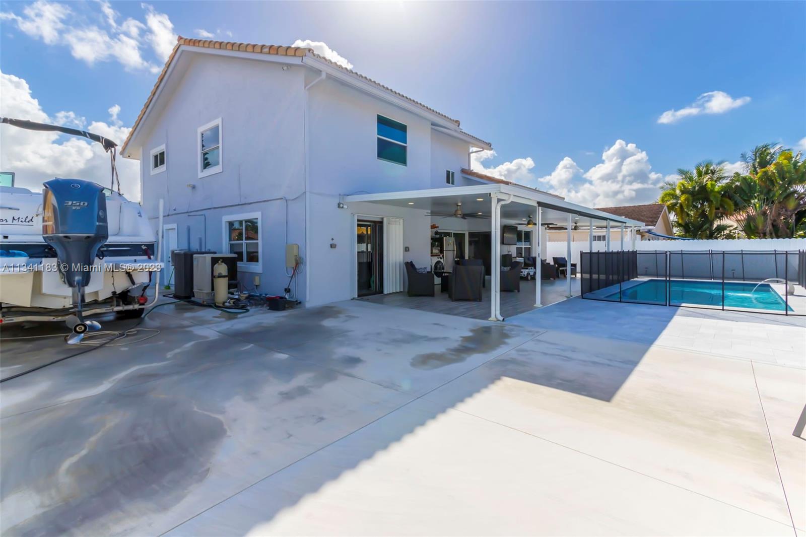 Great opportunity to own this beautiful and unique property, located in a very prestigious neighborhood with low HOA. This masterpiece features 4 bedrooms and 2 bathrooms, fenced backyard, heated pool, modern driveway, tile floors downstairs and laminated floors upstairs, upgraded bathrooms, impact windows and much more. Pool was built in 2021, and backyard was just paved in 2022, AC from 2020, water heater from 2019. Call today for an appointment.