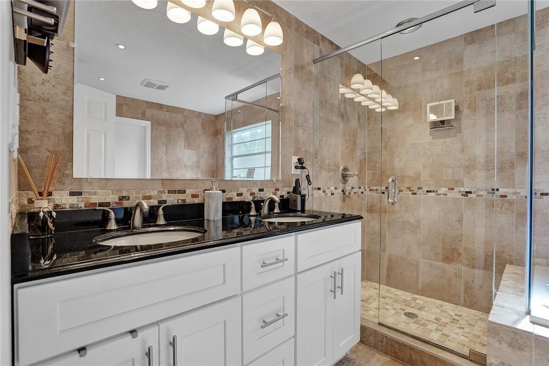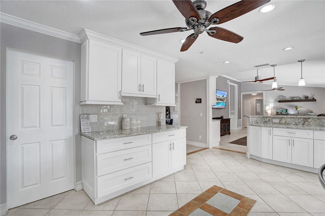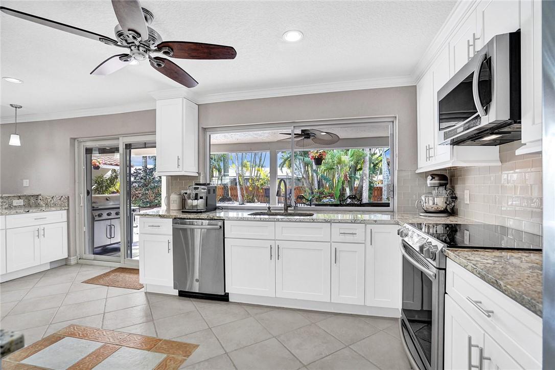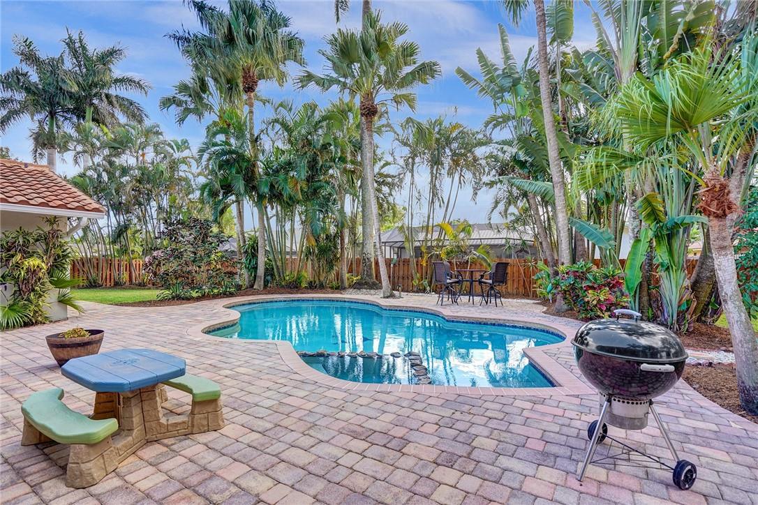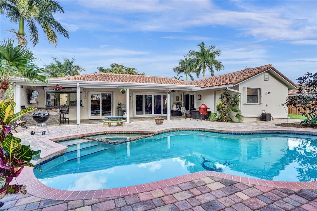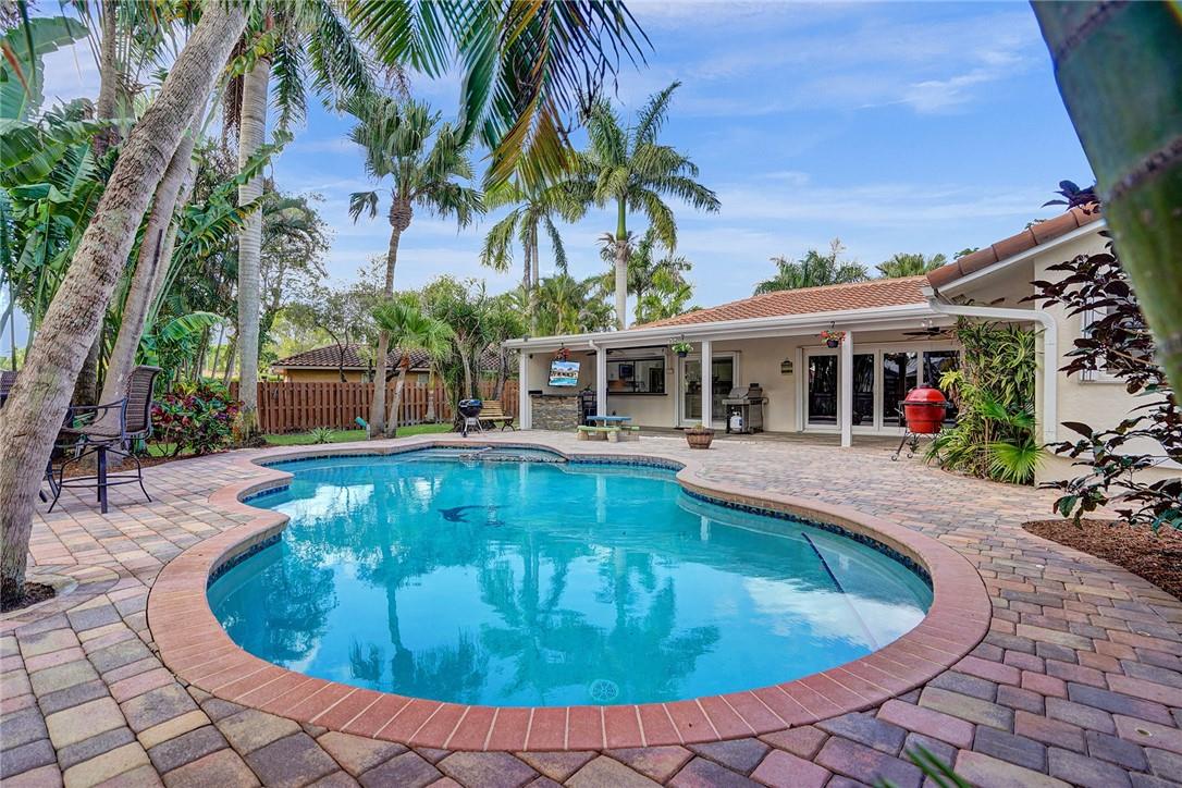 Spacious, updated Jacaranda Lakes pool home on truly oversized landscaped & fenced lot w newer 2018 roof. Updated design features throughout w raised wainscoting panels, moldings, painted accents & built-ins. Newly updated baths & kitchen w granite counters, high end appliances w induction cooktop & convection microwave, dry bar w cabinets w granite & mirror backsplash. Large living areas, formal dining, spacious family room opens to kitchen w dining island. Generous sized Master suite, bath & closet, good sized bedrooms 2-4. Huge patio overlooks freeform pool & spa w child fence. 2019 AC's, accordion shutters, new sliders, laundry & garage cabinetry and recessed lighting. New Sprinkler Pump, outdoor dining Peninsula, extensive landscaping & fruit trees. You'll love this huge yard.