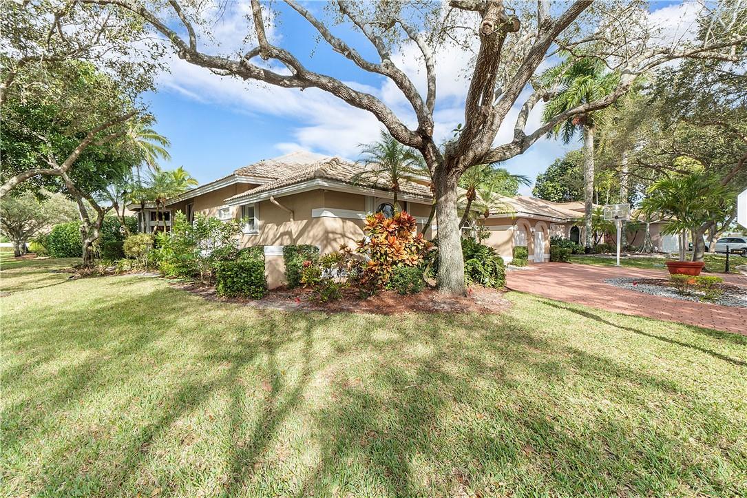 This beautifully updated home is located on a tropically landscaped corner lot in one of Coral Springs most sought after gated communities! Features include a circular driveway, foyer entrance, formal living & dining rooms, family room, breakfast area & office! The kitchen offers light wood Scandinavian cabinets, Corian counters and a new SS French Door refrigerator. There are 31" porcelain floors in the main living areas, wood flooring in all the bedrooms, tongue & grove wood ceilings, LED lighting, split bedrooms, French doors and custom built-ins! Enjoy entertaining family and friends from the screened patio or swimming in the fenced tropical pool! Rock water fall and accordion hurricane shutters! Great location and great area schools! This is truly South Florida Living at its best!