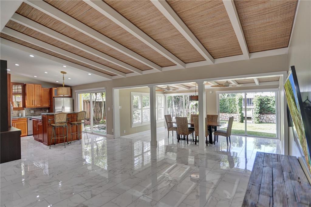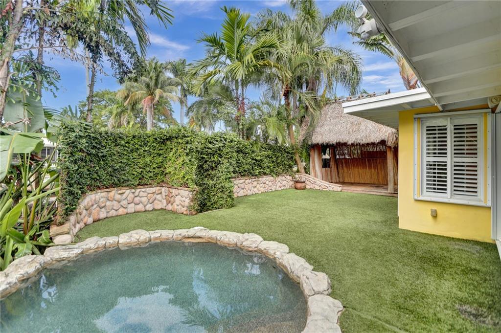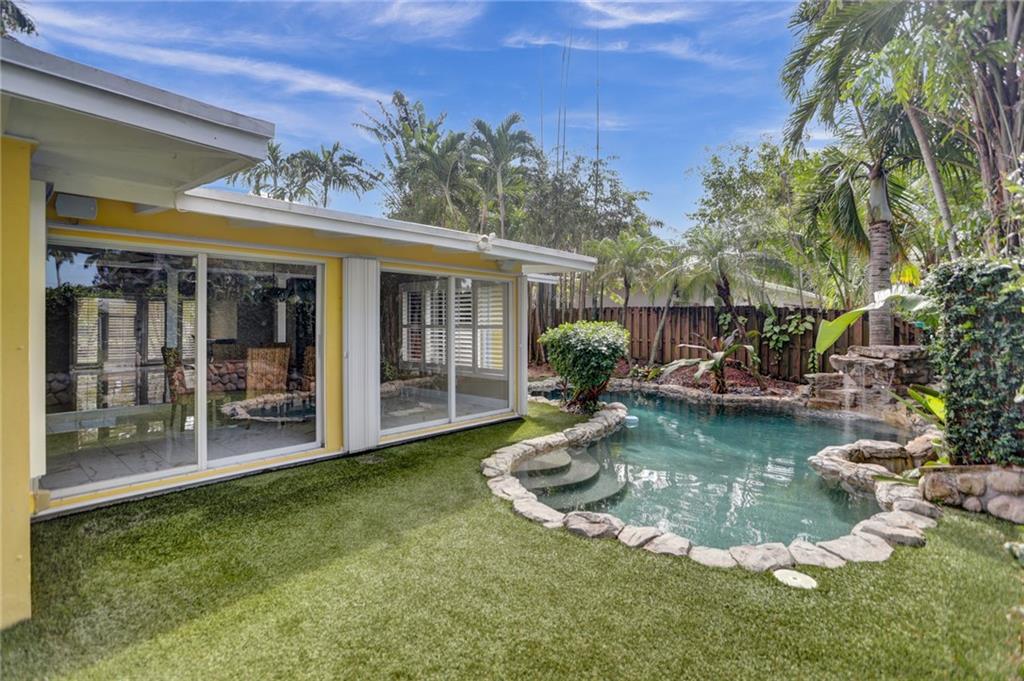 Beautifully maintained waterfront home in Lauderdale Isles with 65 LF of waterfront, situated just 3 homes north of the New River and just minutes from Marina Mile. This home features a Master with a large bathroom, dual sinks, seperate shower and tub. A spacious Master closet with a sitting room/office/den or nursery adjoins to the Master and is located on the water side of the property. The 2nd Bedroom is located on the opposite side of the home and the Kitchen, Family and Dining rooms lie in between. The artifically turfed backyard has a pool with a beautiful rock formation & fountain and a Tiki Hut for relaxing after a day of fun and sun. The garage has been converetd to a seperate 1 bedroom/office with a bath. Call today to schedule your tour as this one won't last.