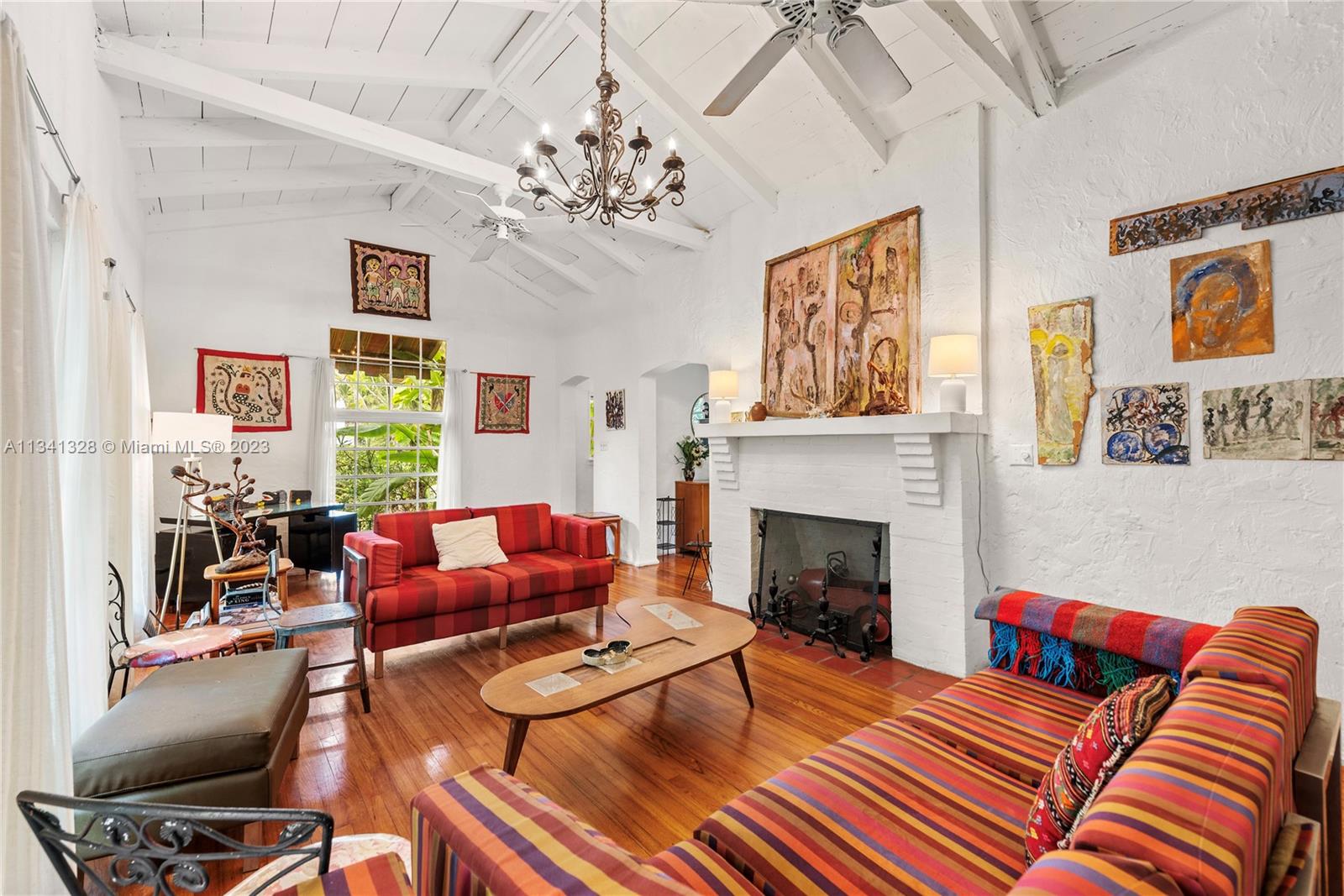 Charming tropical oasis centrally located in Miami Beach. Home features include: 2,222 sf (living area) on a 7,500 sf lot. Main house is 3 bed, 2 bath. Guest house is 1 bed, 1 bath with kitchenette. Dramatic living room with high Cyprus ceilings, Dade County Pine wood floors, laundry room, gas range, partial impact windows, lush landscape, kitchen dining, fireplace, outdoor shower. High walking score - close to beach, shops, restaurants, Sunset Harbor, 1-95, 41st Street, houses of worship.