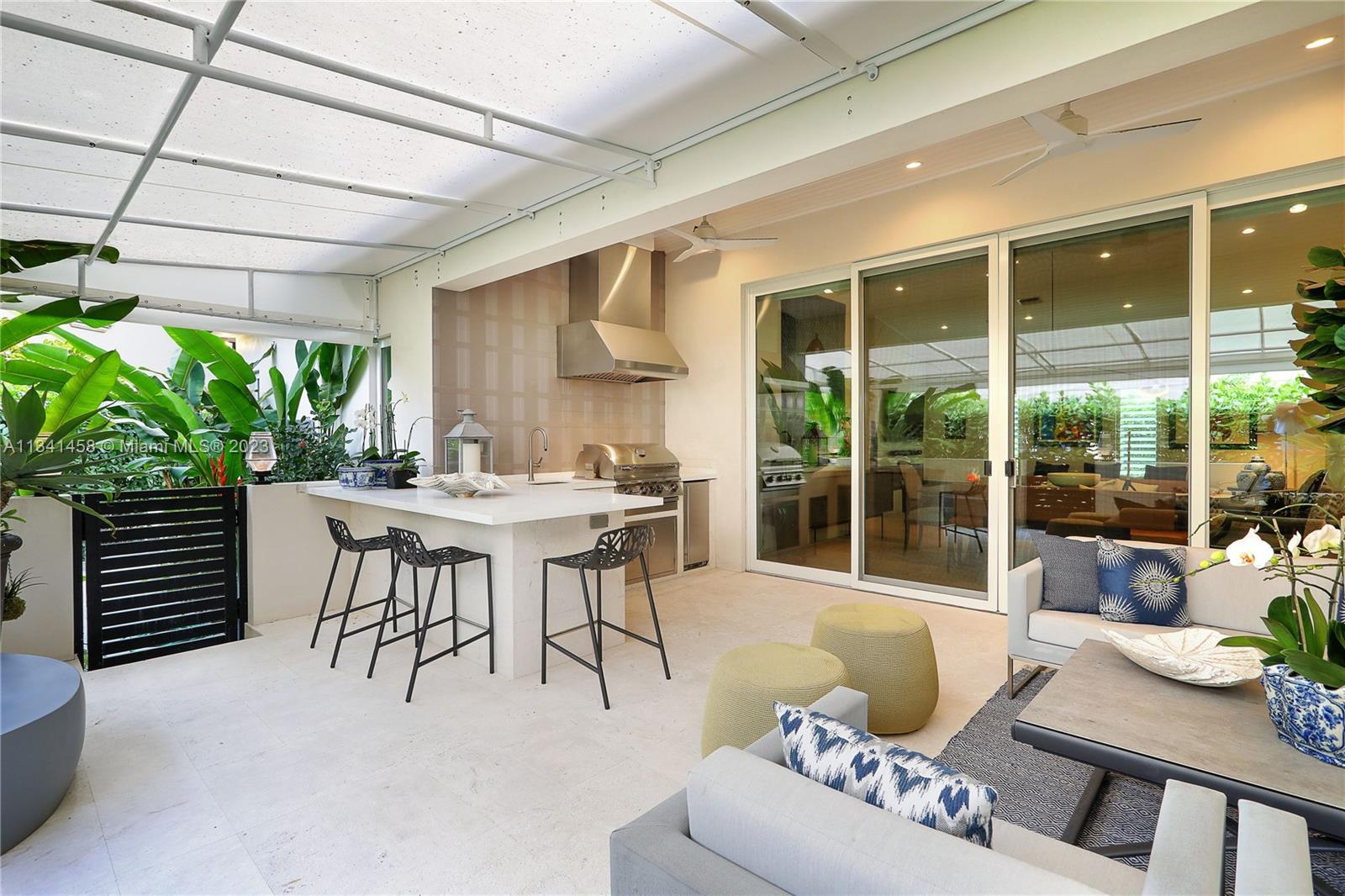 Perfection in the Golden Triangle! This home has been beautifully & meticulously renovated from top to bottom. Enter through the impact glass front door into a spacious open-concept masterpiece w/ the finest finishes including fabulous custom cabinetry, marble counters, Wolf, Miele, & Sub-Zero appliances, full-house generator, gorgeous tilework, California Closets, & more! Ideal for entertaining, the home enjoys gracious indoor & outdoor liv spaces, 2 dining areas, gourmet kitchen & summer kitchen. 3 BRs feature en-suite BAs, the primary bedroom has 2 closets, spa-like BA, & magnificent garden views. The corner lot feels like a secret garden w/ lush, mature landscaping, it also has a circular driveway & side drive that leads to the 2 car gar & large laundry room. A true showstopper!
