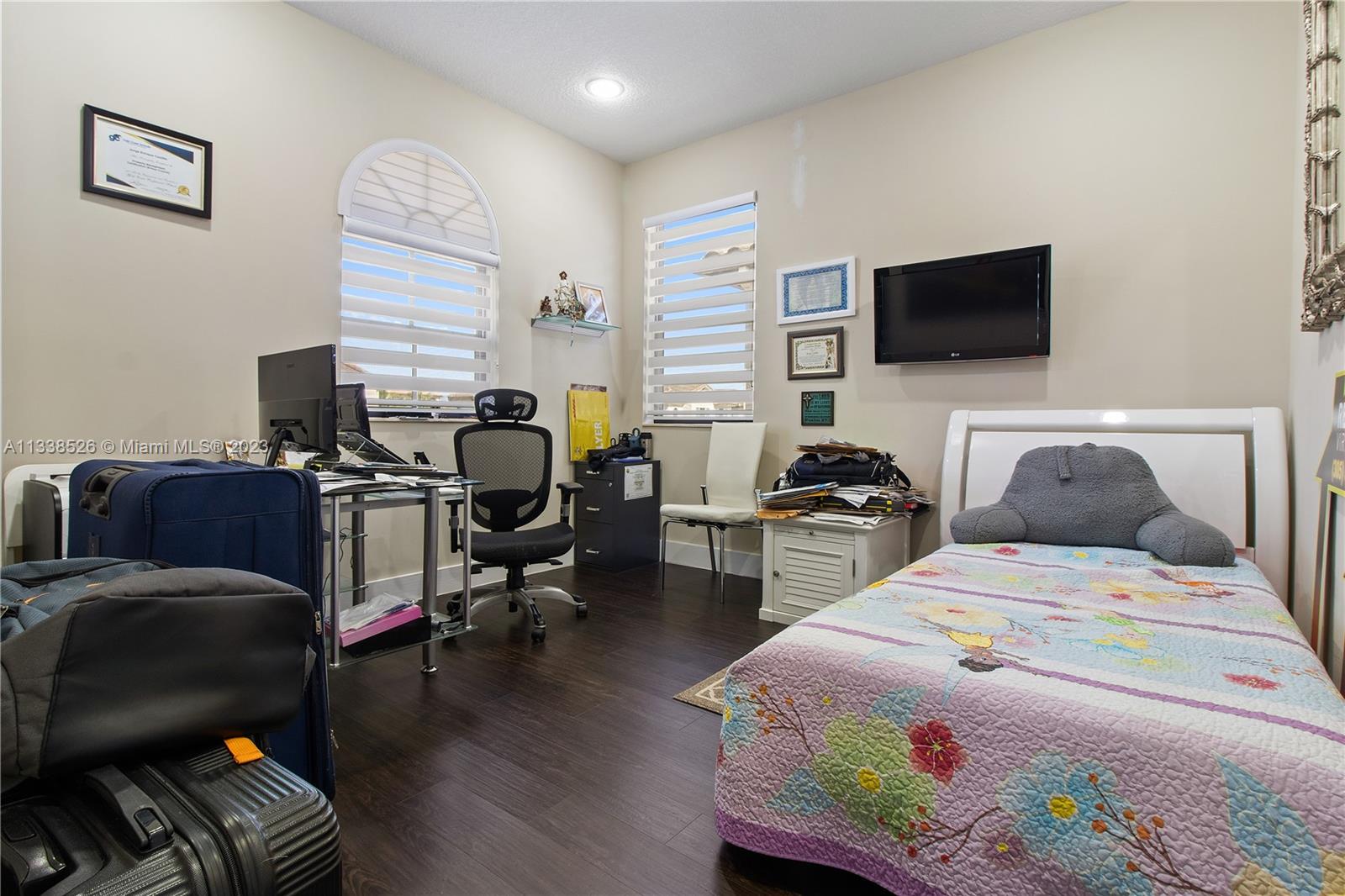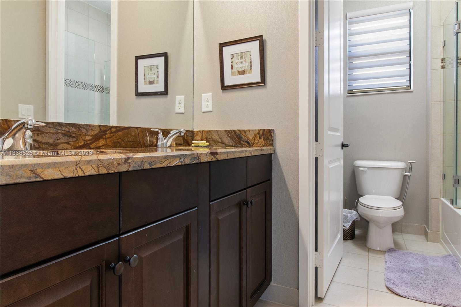 Spectacular HOME 5 ROOMS/(3.5 Bathrooms). Includes 2 MASTER BEDROOM SUITE'S, YES 2 MASTER! (1 on the GROUND FLOOR),on a block away from clubhouse, Approx. $100K of upgrades: Jacuzzi with hydromassage inside a master room, features dual sinks in the bathrooms & separate shower/tub, custom made all walk in closets, features gutters, beautiful porcelain tile on the main floor,High Hats & lamps, eat-in kitchen with upgraded cabinets and granite countertops, smart home audio and security camera system, High-Quality vinyl-wood waterproof laminate floors on second floor. Stainless Steel appliances, great fenced in backyard patio perfect to BBQ, Living room opens onto the outside patio with marble travertine flooring, 24 hour gated security. Clubhouse with party room, kids playroom, gym & pool.