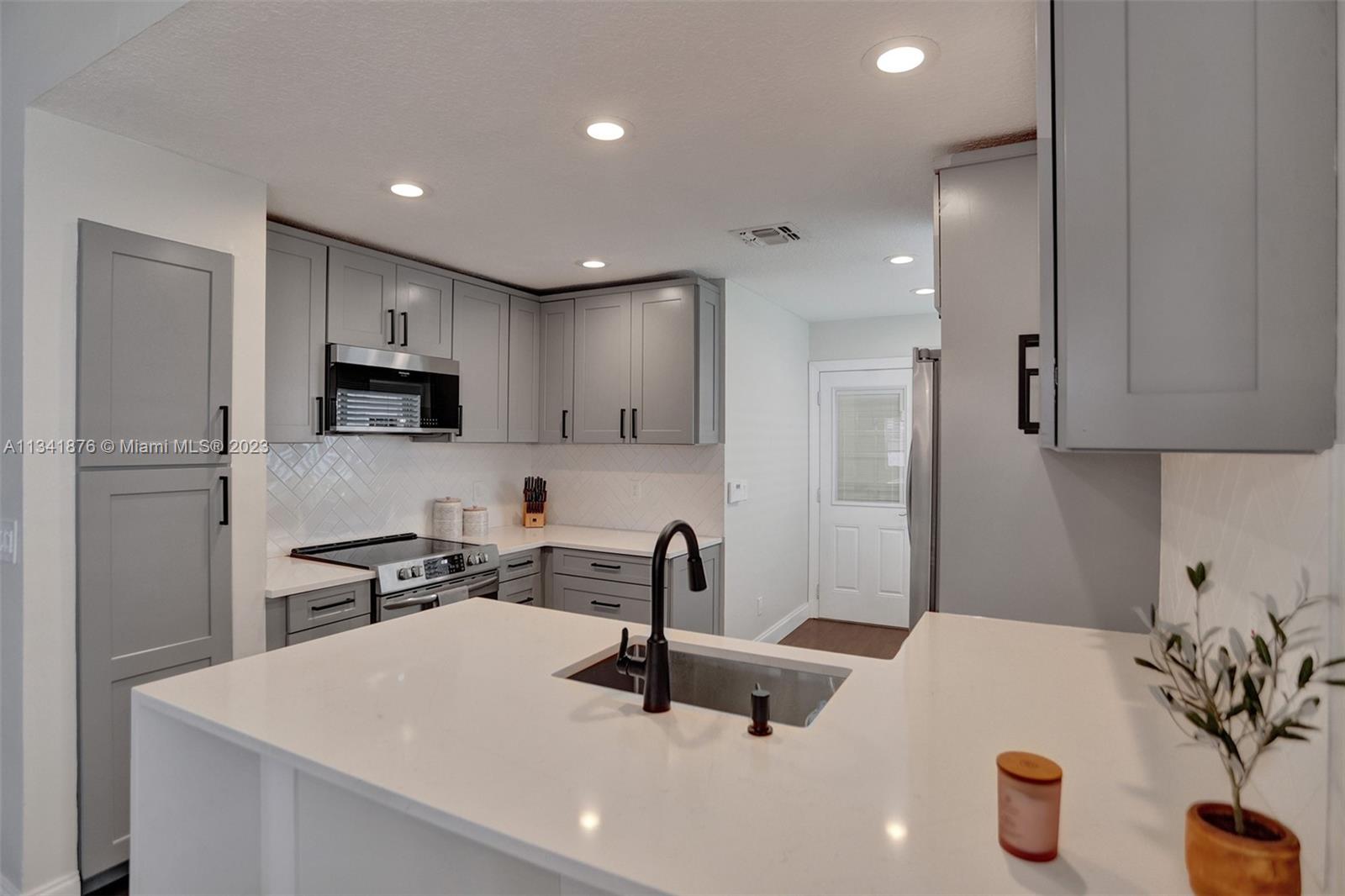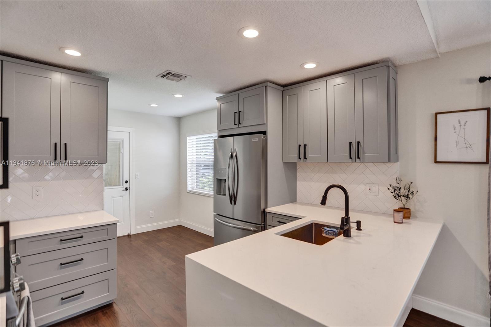 Beautiful Forest Ridge home completely remodeled! This spacious 2 bed/2 bath home is a true turn-key home! Shows nicely with a gorgeous 2021 open kitchen with stainless appliances & stunning quartz countertops, primary & guest bathrooms well designed with subway tile & stylish vanities, Mohawk wood-look laminate throughout home & popcorn ceiling removed. Additional replacements include A/C 5 yrs old, Roof 15 yrs old, Tankless water heater, modern lighting & Dryer 2022. Home fully protected with impact windows/slider/front door & accordion shutters. Low monthly HOA includes community pool, rec courts, cutting front lawn, & sprinklers. Top rated schools, I-595 & shopping close by. This is the opportunity to live in & enjoy the beauty of one of Broward County's favorite family neighborhoods!