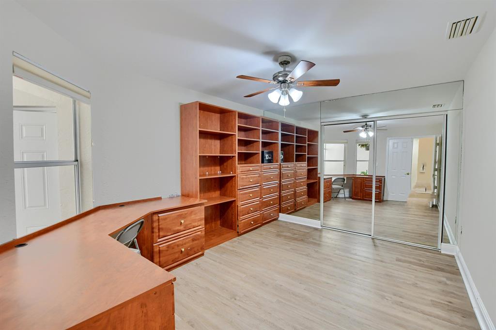 Bring all offers!! Exquisite light & bright single-story townhome located in the charming section of Windsor Parke in the Polo Club. The dramatic open-concept design offers great flow between the dining room, double-height ceiling living room, and kitchen. The delightful kitchen has sleek stainless steel appliances, a convenient eat-in area and access to the patio. A split bedroom floor plan offers complete privacy for all. The master suite features large closet space and access to the backyard patio area. The master bathroom includes two walk in showers. The two secondary bedrooms are both generous in size. The third bedroom is arranged as a built-in office which can easily be reconfigured to a conventional bedroom. Lush landscaping offers a tranquil retreat on the spacious outdoor patio.