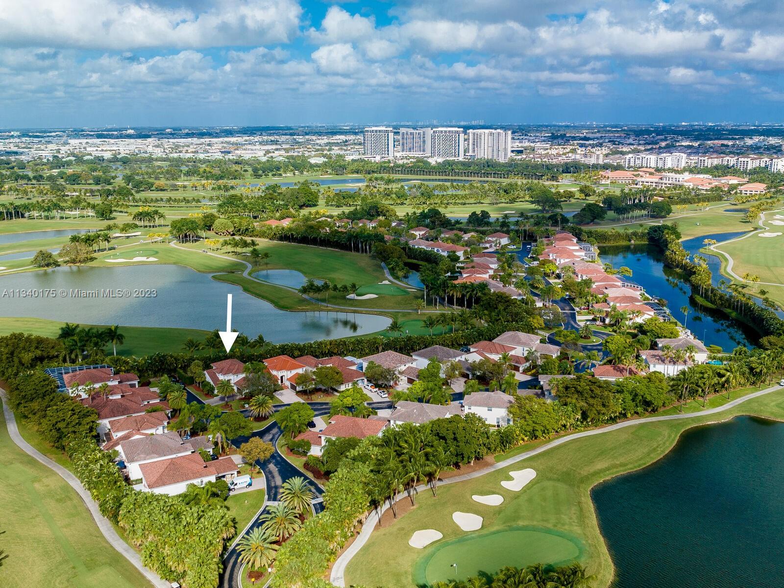 *Doral Estates Villas Fairway Homes*. Two-story home by the famous red golf course. This house features 3 bedrooms one is the master bedroom downstairs and 2.5 bathrooms. Double car garage, marble floors and spacious open concept kitchen with Miele appliances w/ granite counter tops. Located on the 15th hole red tiger golf course of the prestigious Doral Golf Resort, the community has swimming pool, guard security to entry and security rover. The house has a lot of upgrades (see attachments) like new roof, new car garage door, new AC units, new electric panel, new water heater, Tesla ports, and more. Come see! Call LA for private appointments.