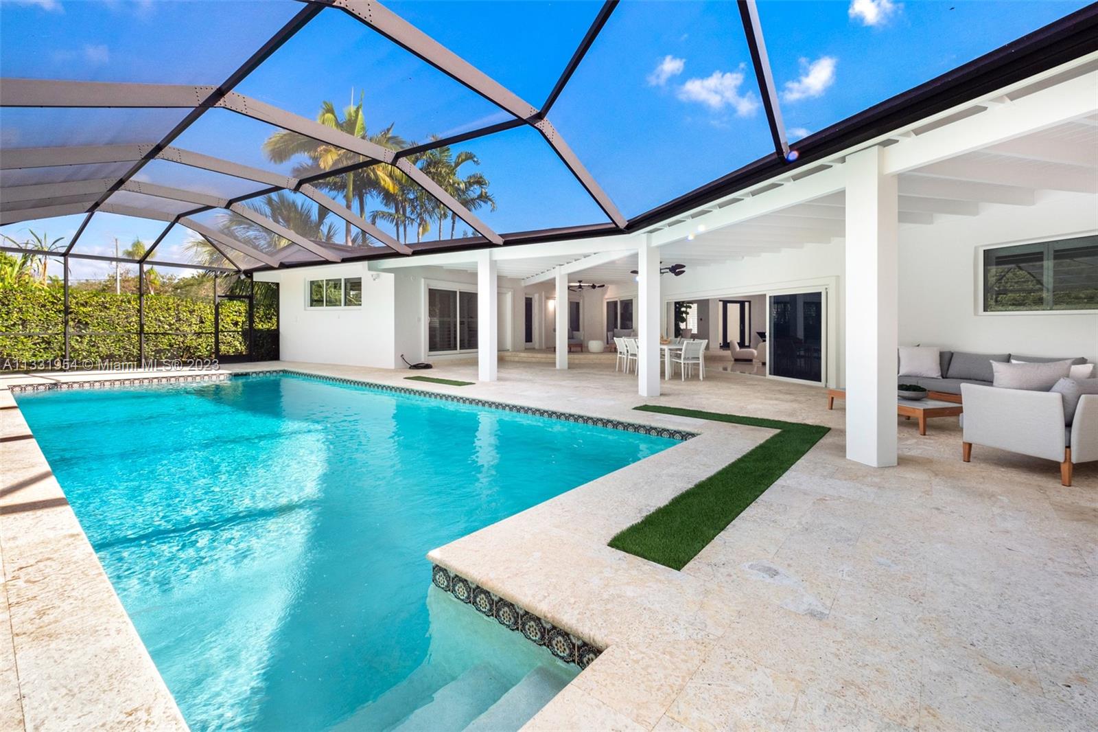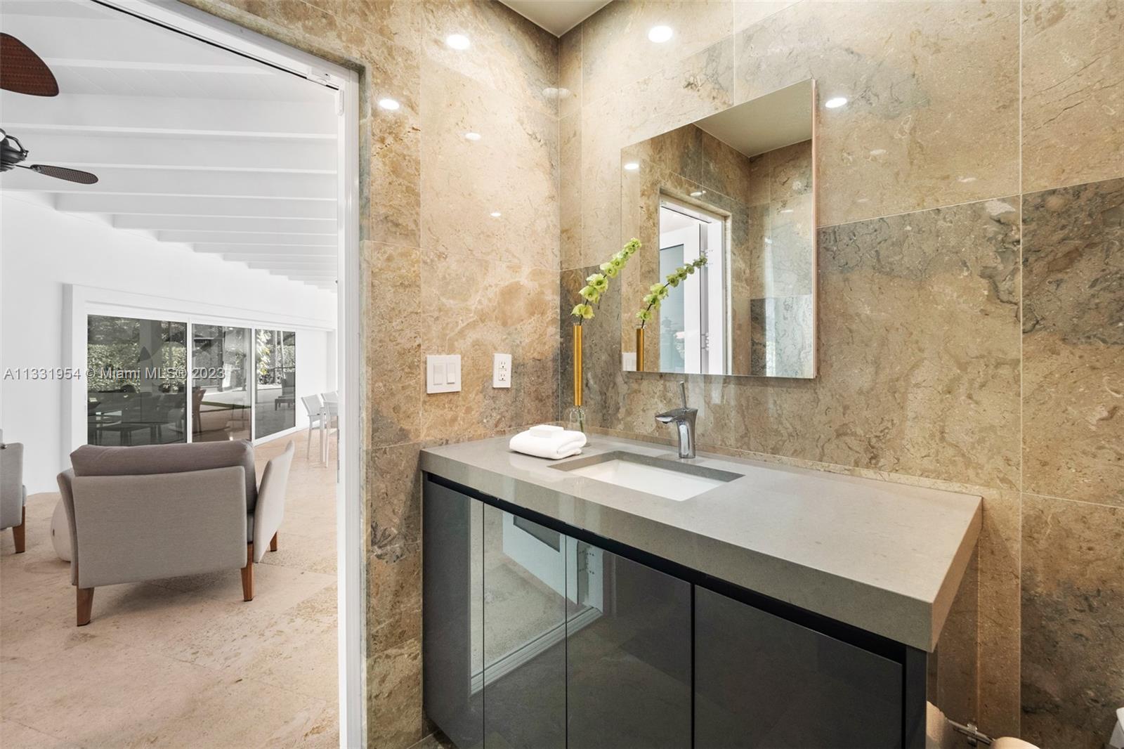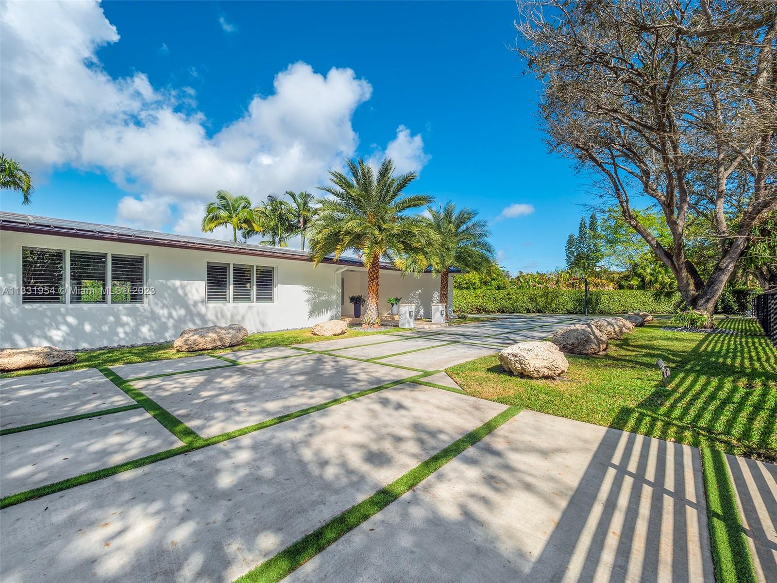 Completely and meticulously renovated contemporary home situated on an expansive 26,963 SF lot in the heart of Pinecrest. This turn-key luxury home features an open floor plan with spacious living room and dining area that open to a large covered terrace and a saline heated pool, perfect for year-round entertainment. Fabulous chef's kitchen features Italkraft wood, white lacquer cabinetry, stainless steel top of the line appliances, separate large laundry and storage room. This 4bd/4bath home offers ensuite guest bedrooms, a sumptuous primary bedroom with walk-in closet and beautiful bath. Enjoy swimming in the pool, playing a round of basketball or sitting in your backyard next to a natural waterfall grotto to calm the senses. 2 car garage w electric charger; Energy Saving Solar panels.