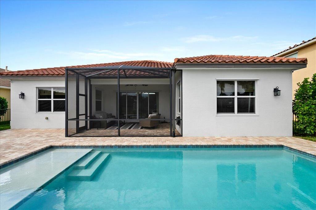 Welcome to Portosol! Stunning gated community in the heart of Royal Palm Beach. Welcome to this 4 Bedroom, 3 Bath, 2 Car Garage and Private Pool Single Family Home. Enjoy the private backyard, with a stunning extended patio and beautiful lake views! This home backs up to a beautiful lake with easy access to clubhouse and amenities with just a short walk on the pathway. Inside this beautiful property you will find a split floor plan consisting of 4 Bedrooms and 3 Full Bathrooms. Open concept kitchen, with beautiful white shaker cabinets and granite counter tops. Kitchen has all stainless steel appliances and bright lighting. Kitchen and living room has beautiful new lighting hanging throughout the home.