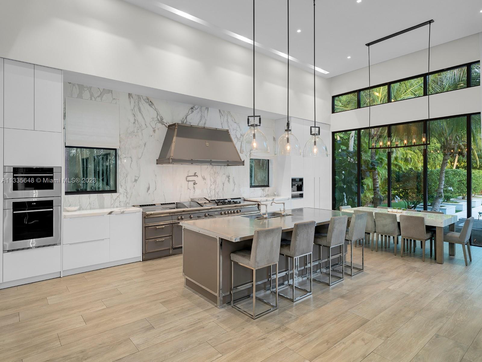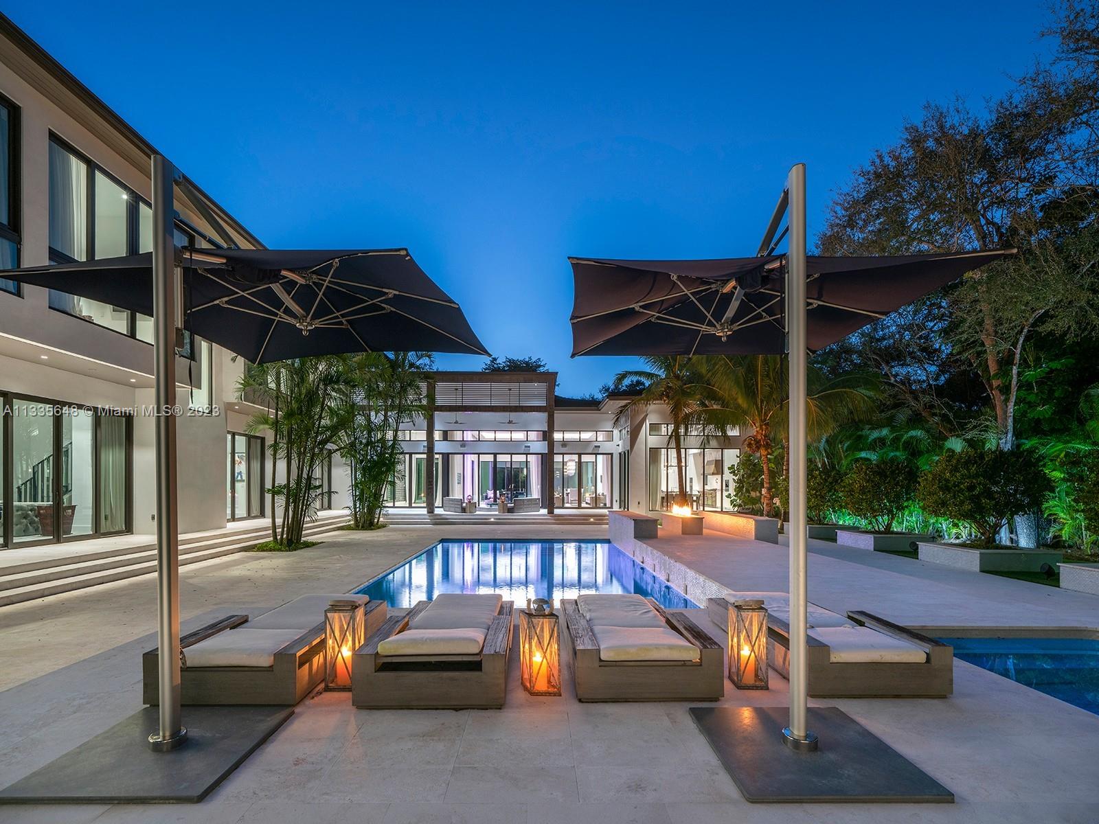 Modern Style meets unmatched elegance in this tropical paradise in N Pinecrest. This exquisite 2019 custom estate sits on over an acre & greets you w/multiple water features, grand foyer, volume ceilings & flr to ceiling white linen draperies. Unique open plan offering panoramic views of the outdrs from great rm. Quintessential kitchen by Officine Gullo w/walk-in pantry & Wolf/SubZero appl. This estate has it all w/state-of-the-art video & surround sound, home theatre, & sports bar rm. Bi-Level bedrms w/private sitting rms downstairs. Lavish master ste w/boutique WIC, sitting area, spa bath w/floating tub & 16ft shower. Outdr oasis w/pool, spa, covered terr, summer kit, outdr shower. Other Feat: elevator, maids rm, generator, 3 fire pits, 3 car gar w/space for lifts, elite schools nearby.