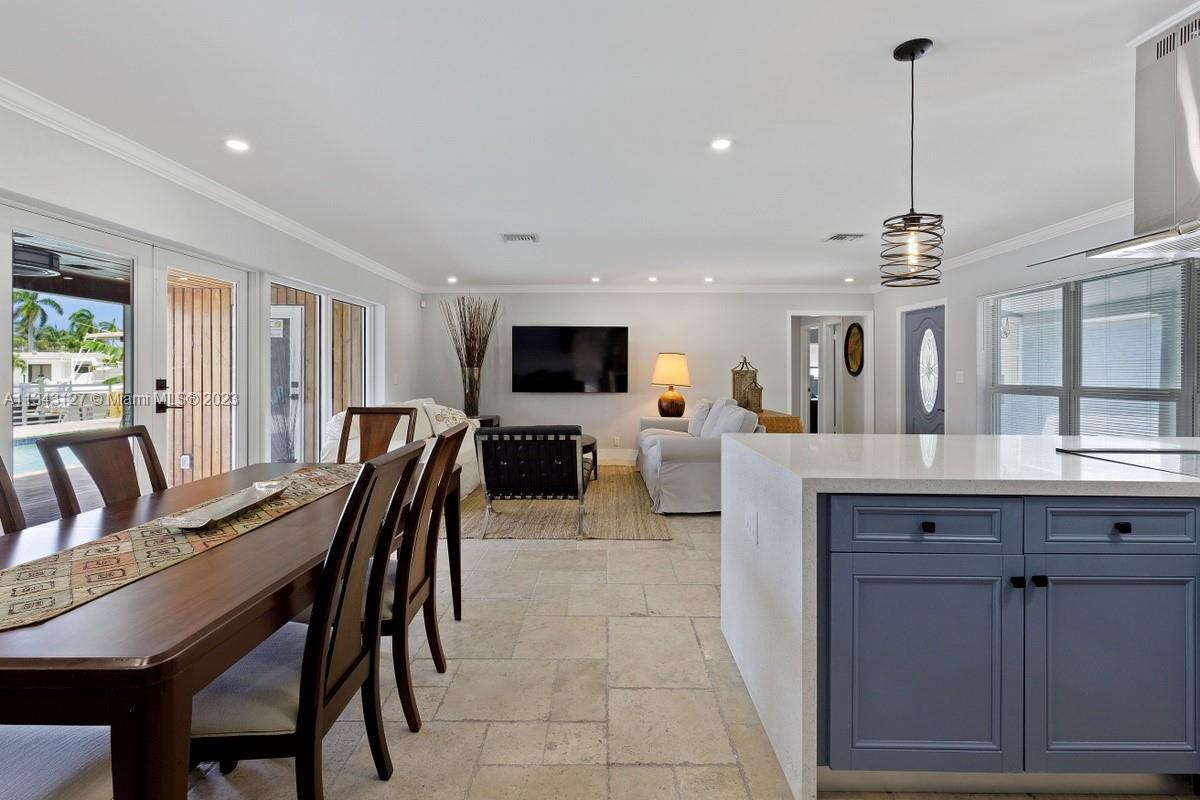 BEAUTIFUL 3/3.5 TOTALLY REMODEL ONE STORY HOUSE. MARBLE FLOORS, NEW KITCHEN WITH QUARTZ COUNTER TOPS, HUGE HEATED POOL WITH A PRIVATE 60" DOCK, CABANA BATHROOM, GREAT PATIO FOR ENTERTAINMENT. 3 MINUTES IN CAR AND 12 MINUTES WALKING TO THE BEACH, HAS NO HOA.