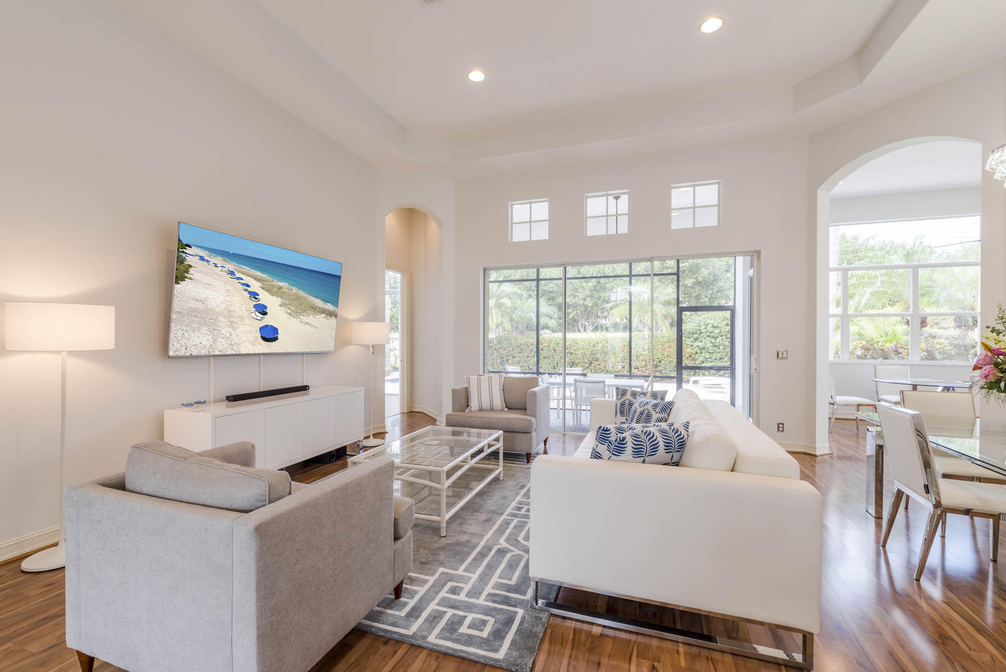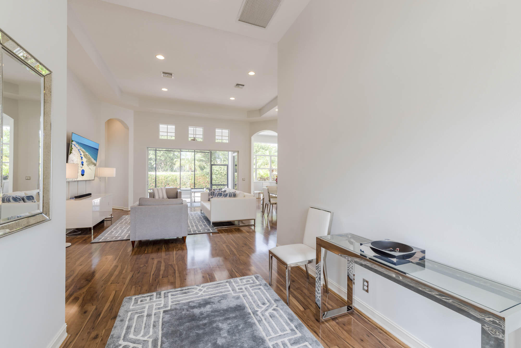 Discover the ultimate in luxury living in this former builder's model open floor plan home located in the award-winning Club at Ibis. This stunning property boasts 2 bedrooms, 2 baths, and a convenient den, making it the perfect place to call home. The freshly painted exterior and newly painted interior are just the beginning of the many updates and upgrades this home has to offer. Soaring ceilings, beautiful wood floors, and updated light fixtures add to the home's charm and sophistication. Updated glass shower doors in both bathrooms and a completely updated guest bathroom add to the home's appeal. The kitchen is a chef's dream, featuring a gas stove and stainless-steel appliances. Impact