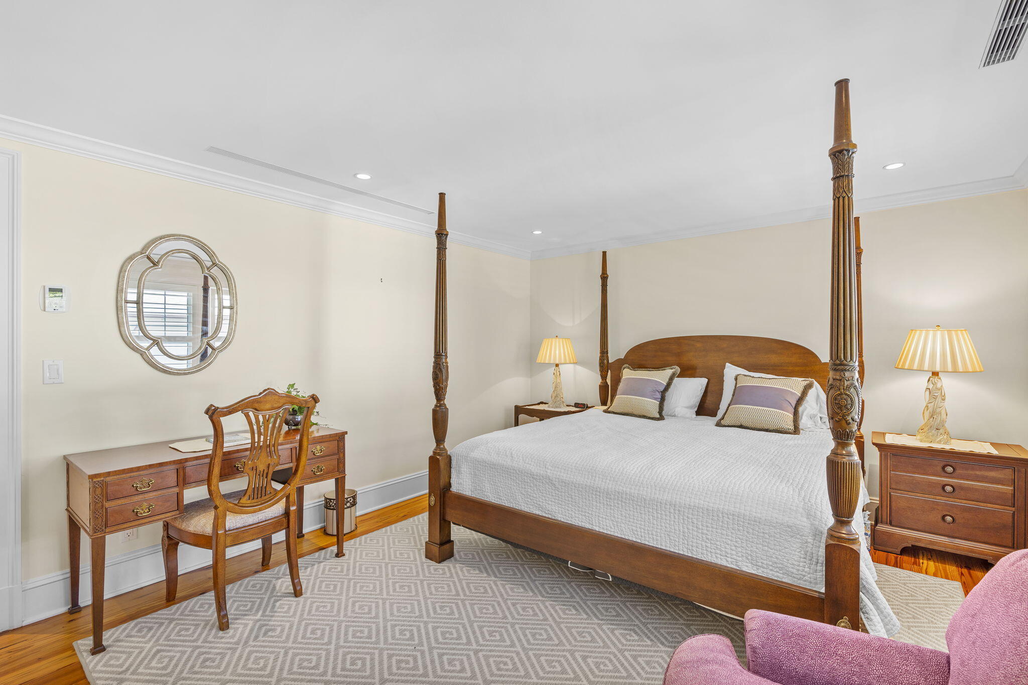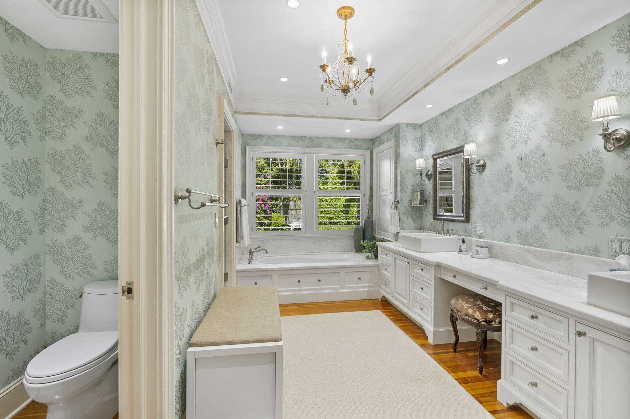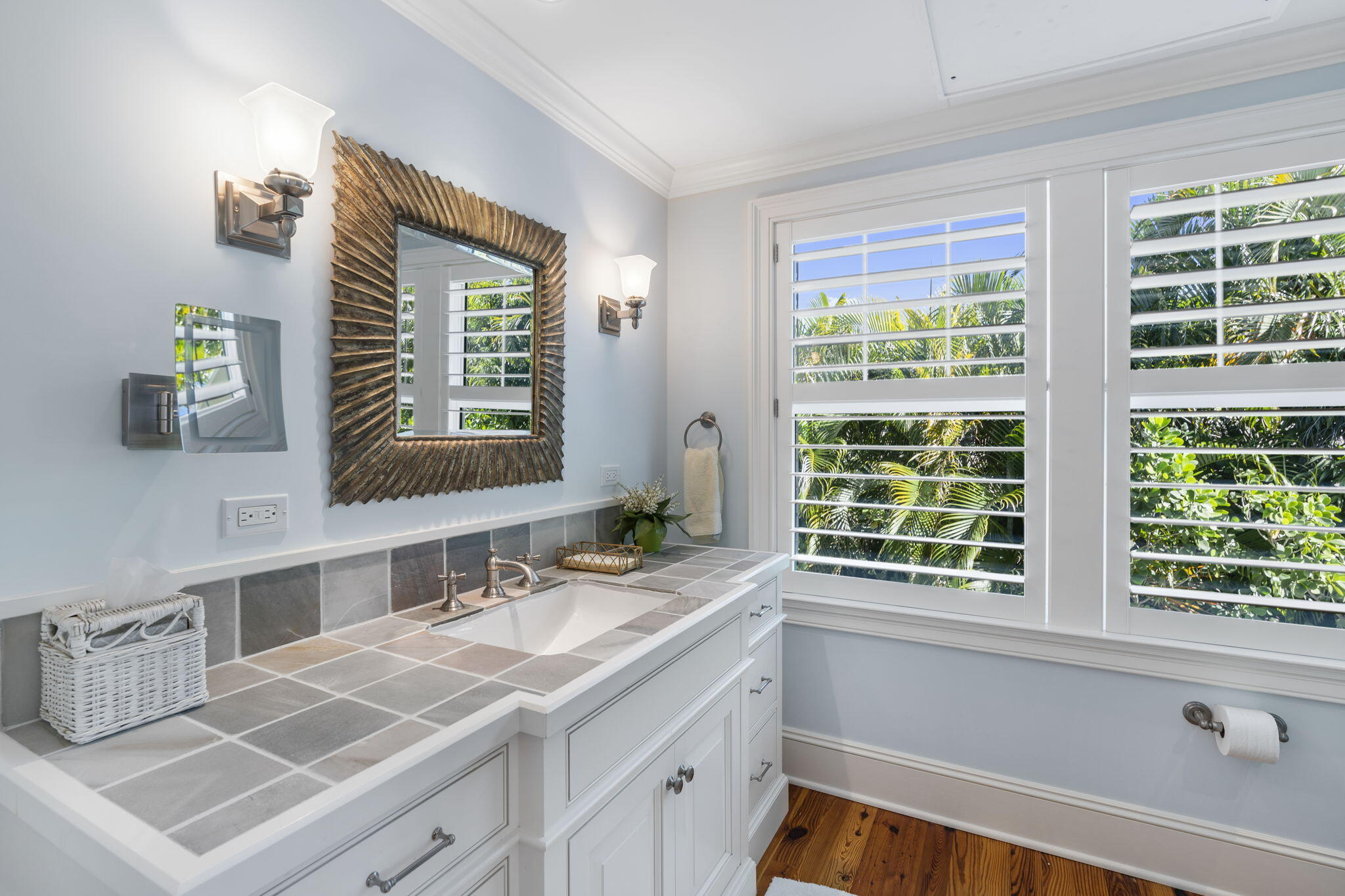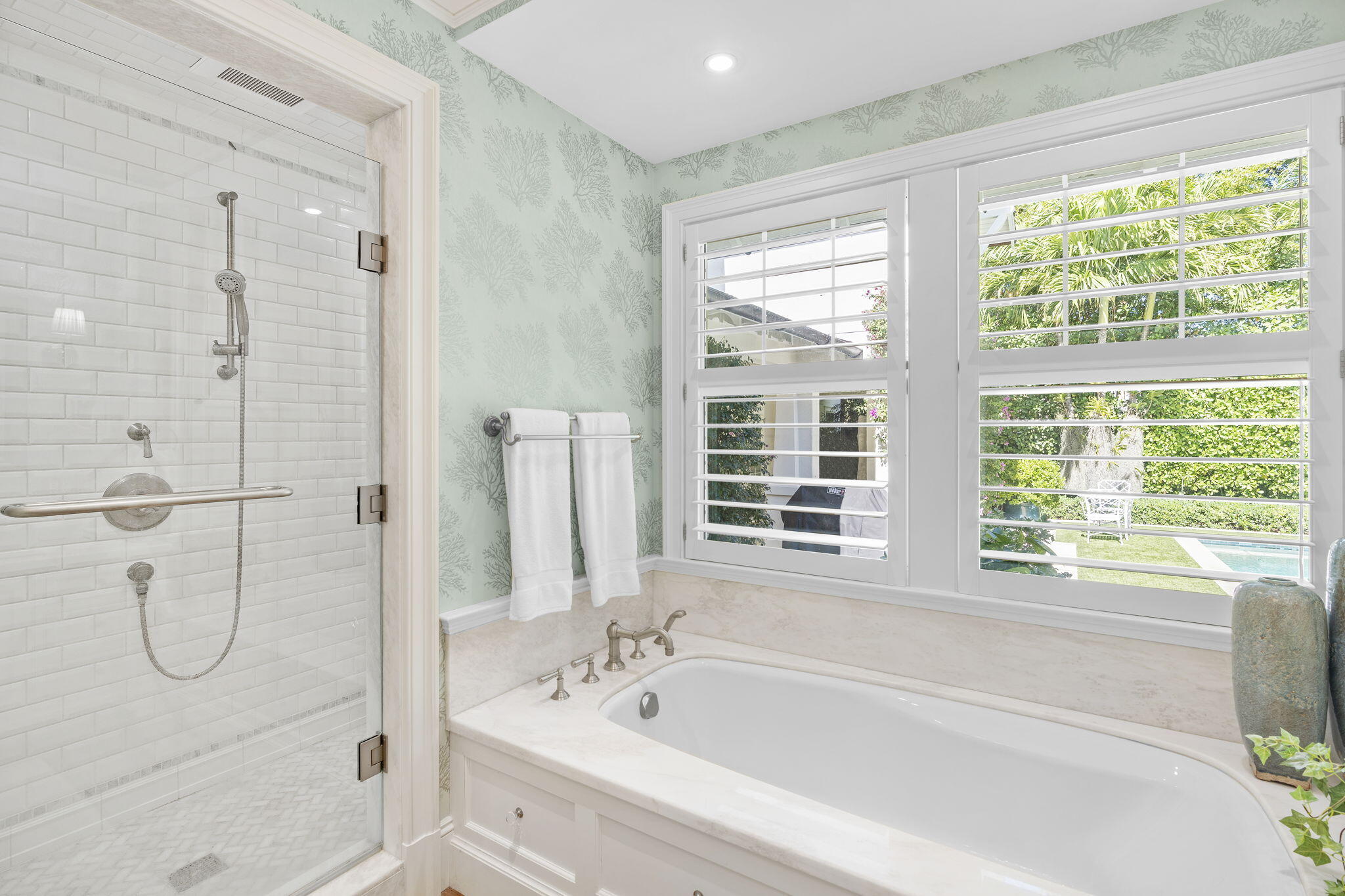 Move in ready ocean block home with master on the first floor opens to a private backyard with beautiful pool and gardens. Bougainvillea blossoms adorn the porte-cochere leading to the charming entry porch. Inside, a welcoming foyer with a window seat and custom built-ins leads you to the formal living and dining room. The home is replete with pristine hardwood floors throughout, all new kitchen and bathrooms, full impact glass, and a first floor primary suite. Upstairs are two more guest bedrooms and a bonus room that would make a great home office or den. Attached to the main house by a breezeway is a 2 car garage with an exercise room, utility/laundry room, and a second story guest cottage with two bedrooms and bathrooms, and a living room.