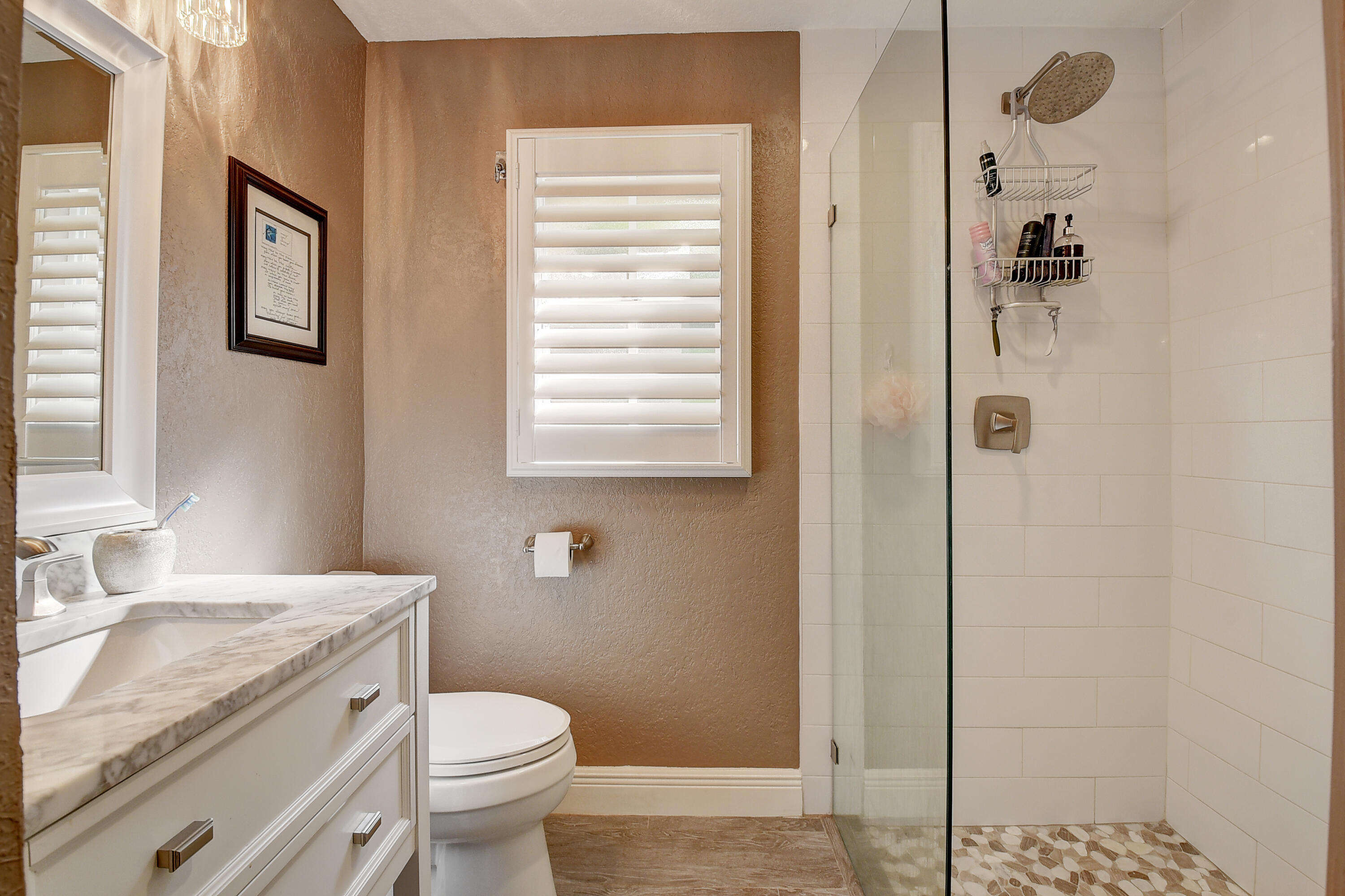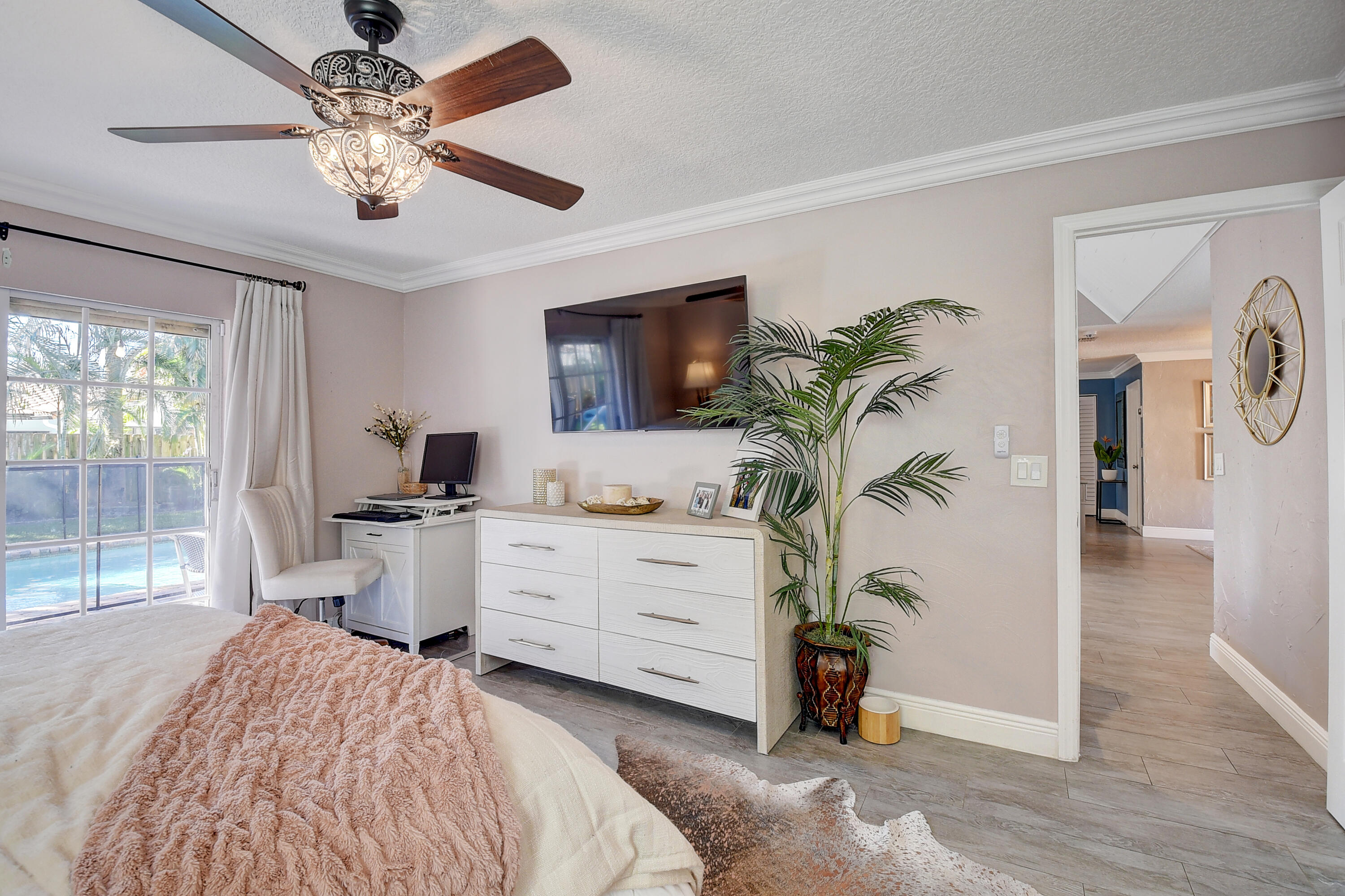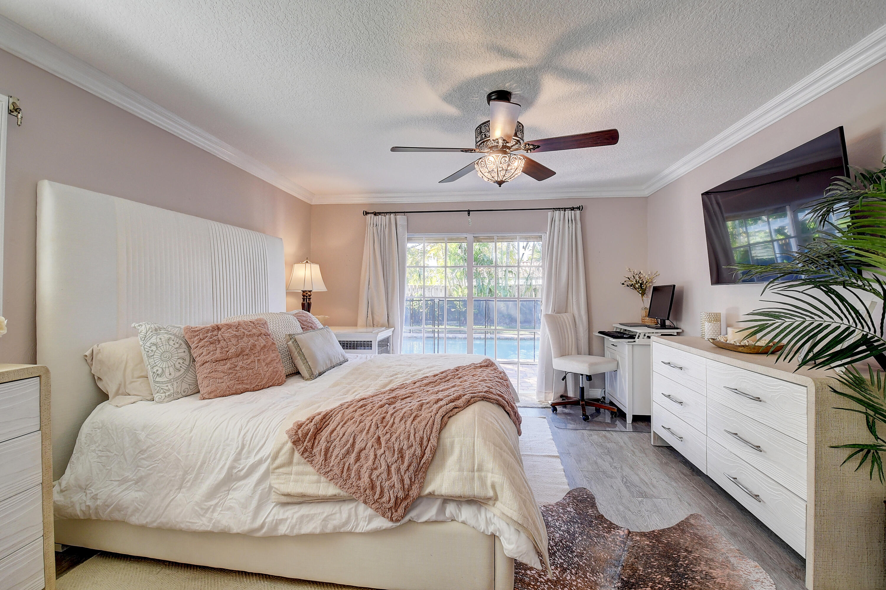 Gorgeous move in ready, east Boca Raton home, on a lushly landscaped oversized lot. All new in 2021: kitchen appliances, refinished cabinets, pool heater, pool pump, pool fence, landscape lighting, water heater, washer, alarm system, freshly painted interior and exterior. Spacious floor plan with kitchen open to the family room, split bedrooms, separate formal dining room, and volume ceilings in the living room. Custom plantation shutters. Easy maintenance wood-look porcelain floors throughout the house and engineered wood floors in two of the bedrooms. Peaceful outdoor space with front lanai and private resort-style backyard with a large pool and pergola. Quick and easy roll down hurricane shutters on the windows. Excellent schools, close to restaurants, beaches, hospital, FAU, I95