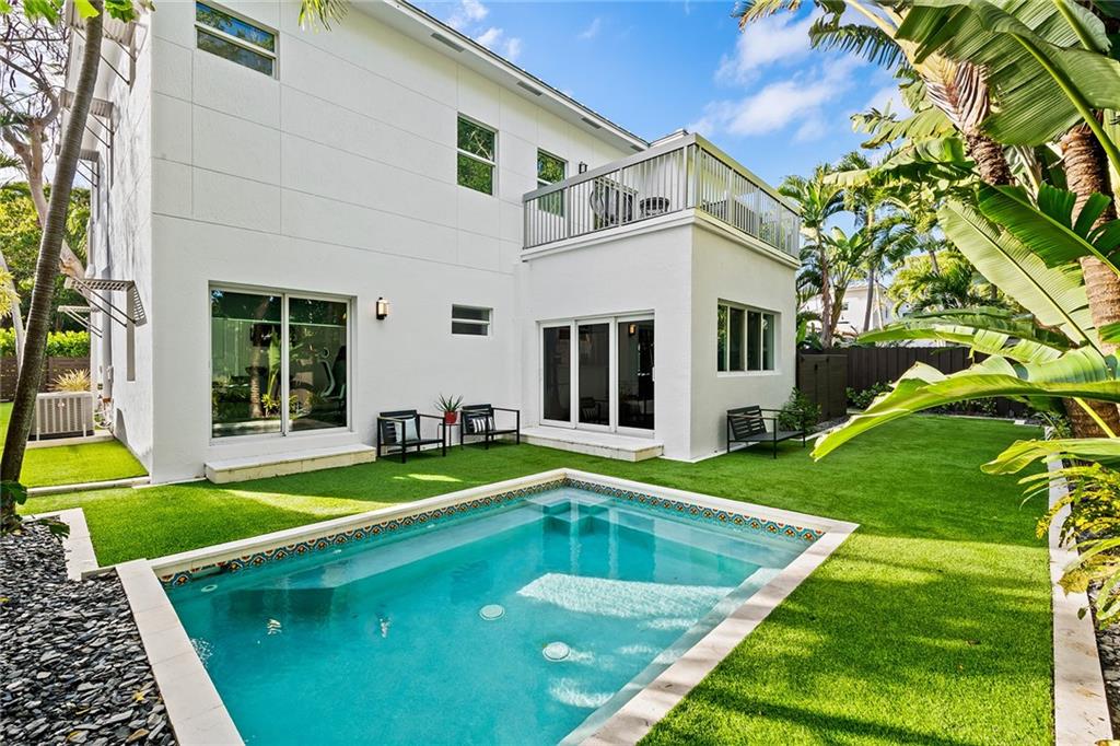Updated E. Fort Lauderdale pool home with contemporary elements of design, ideal for today's lifestyle. This residence is situated on a quiet street & completely fenced w/lush landscaping creating the effect of a private compound. The bright open flr plan features a kitchen that opens into the homes multiple entertaining spaces. The integration of indoor & outdoor tropical living is accessed through multiple sliding doorways throughout the home. A roof top terrace overlooks the pool & expansive green areas. The spacious primary suite provides the ultimate retreat w/an open balcony, 2 custom walk-in closets & spa inspired bathrm. The Jr. suite has a pvt. bathrm, 2 closets & balcony. 2 additional bedrms share a full bathrm. Mins to shopping, restaurants, parks & the beach. Sq. ft. from BCPA