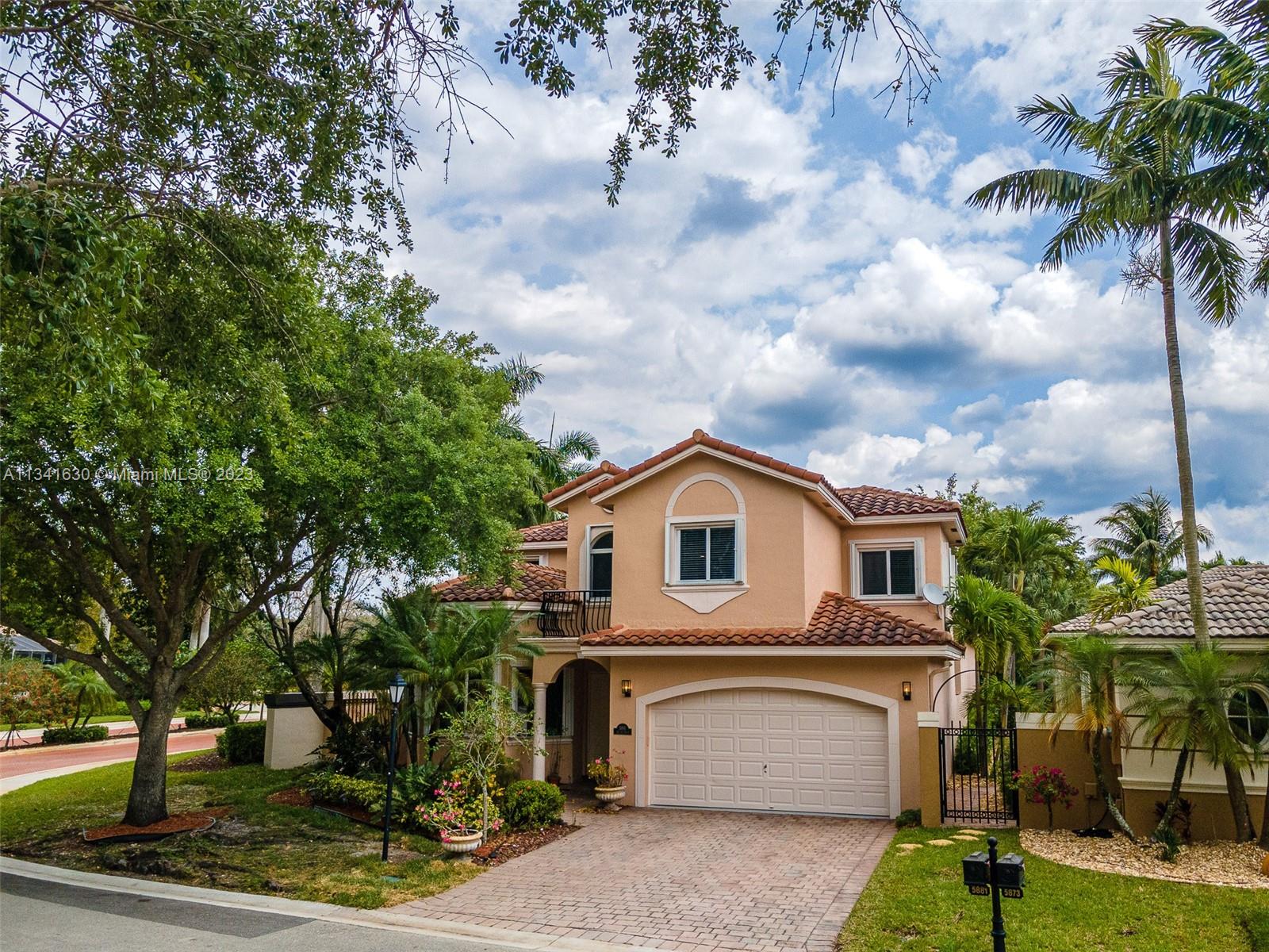 Highly sought-after Mizner Village@Heron Bay, Parkland living with low Coral Springs taxes! Zoned for Parkland schools! A+ School District! This 4/3 elegant & bright corner lot home features a 1st-floor master bedroom with wood floors, remodeled master bath with dual vanities, and a roman tub. Also, a 1st-floor Guest room with ceramic flooring & full bath, 2 big bedrooms & 1 full bath upstairs. Tile floors in living areas, updated kitchen w/real wood cabinets & granite. The entire home has been freshly painted, w/ accordion shutters, and a 2-car garage with epoxy floor. Beautiful +2,000sqf garden with additional patio and fenced yard. The community boasts 2 resort-style clubhouses, kids splash pad, tennis courts, and racquetball courts. Home features:2014 ROOF, 2022 A/C, 2015 water heater.