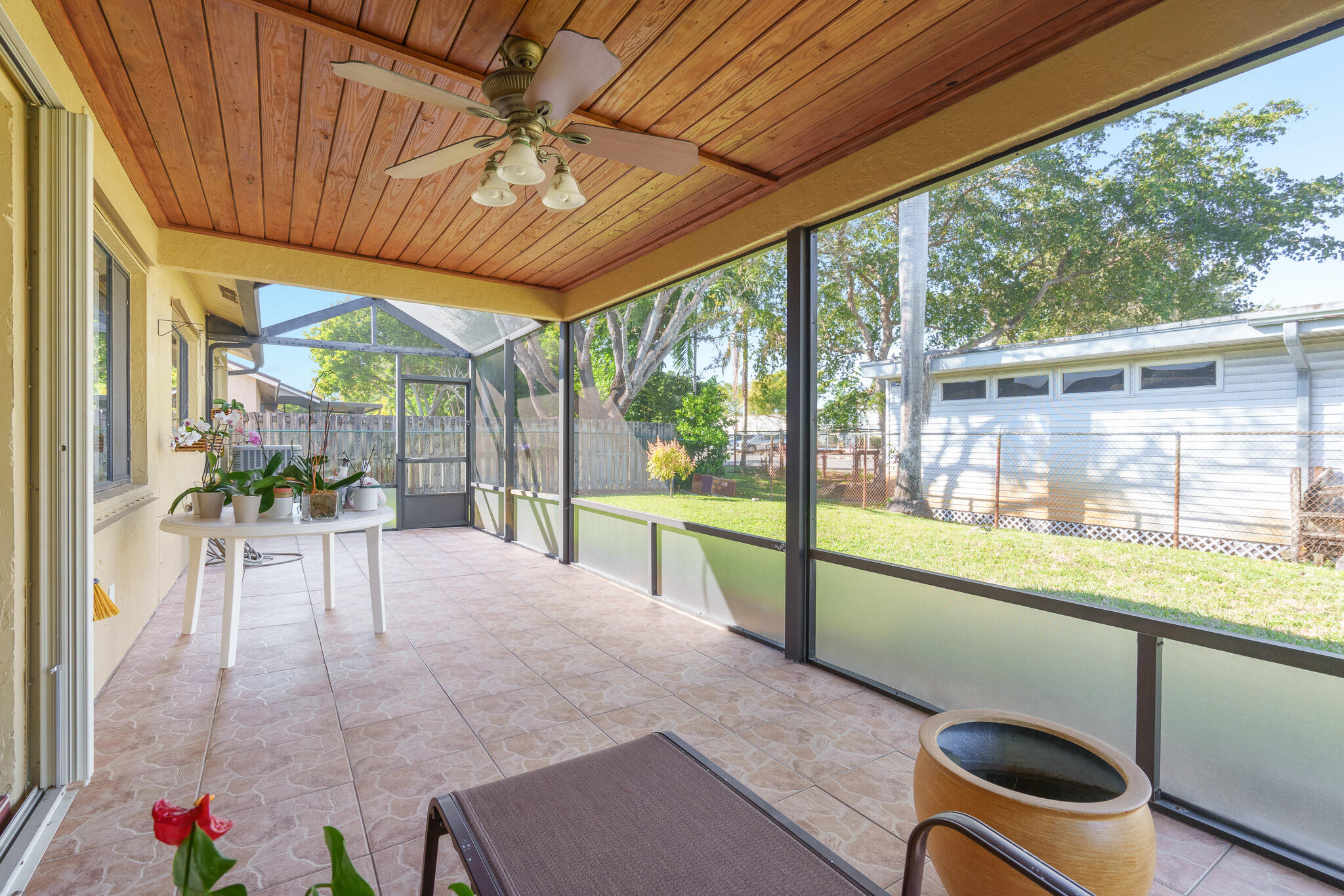 BACK ON THE MARKET. Immaculately kept one story, 3 bedroom and 2 bathroom home. Circular driveway, 2 car garage. NO HOA. High ceiling entrance, formal living and dinning room. Kitchen boasts quality custom wood cabinets, granite countertops and stainless steel appliances. Next to the Kitchen is a breakfast nook leading into the family/tv room. Oversized covered and screened patio overlooking the spacious fenced in backyard. Home has Hurricane shutters, a whole home water filtration/softening system and a auto sprinkler system. Kitchen has reverse osmosis filter. Updated Bathrooms. Garage has large laundry area with updated machines. AC is 3-4yrs old. Quiet cul-de-sac street. No HOA and close to great rated Nob Hill Elementary School as well as recreational parks.