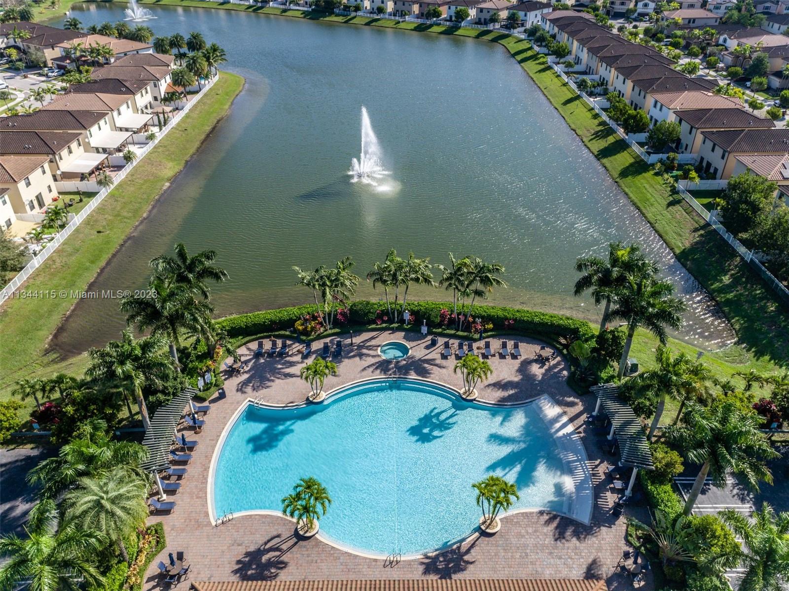 Fabulous and Impeccable lake view house 4 bedrooms, 3 full bathrooms, in the gated community of ARAGON, meticulously care for by the only owner, spacious marble patio for entertainment with beautiful view, porcelain on first floor, wood on second floor, stainless steel appliances, one bedroom and full remodeled bathroom downstairs, garage, clubhouse all amenities are included, community pool, playground.
