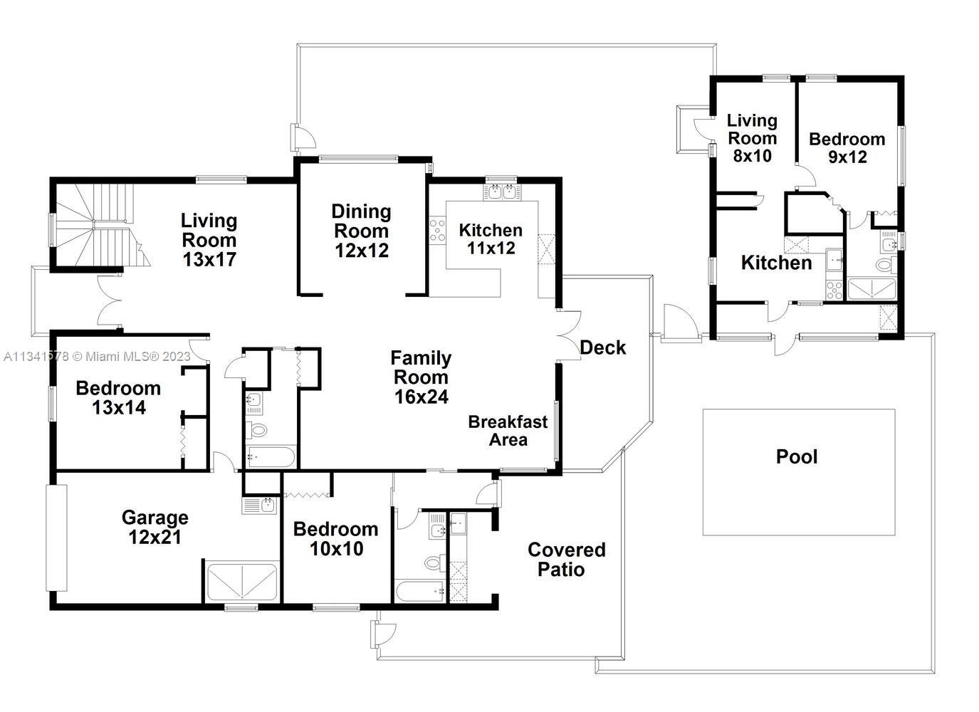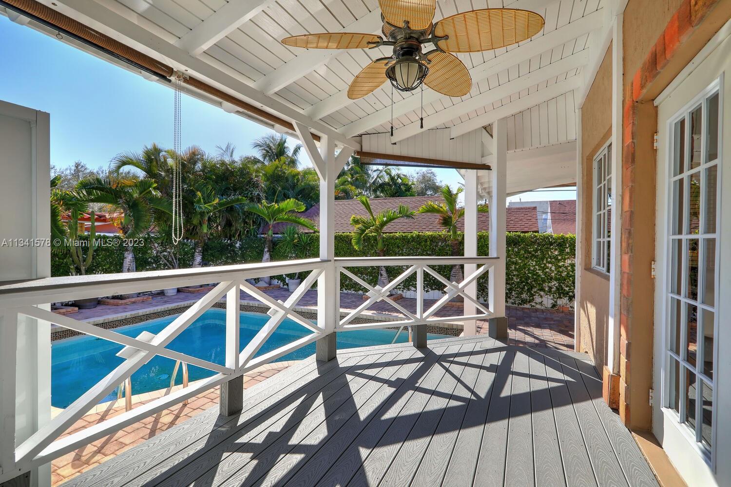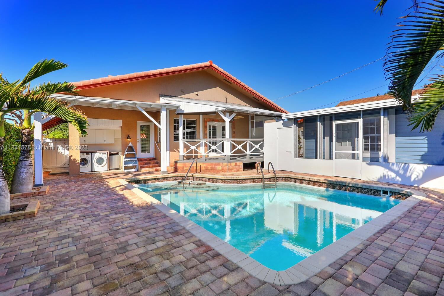 This charming French-style pool home is a spacious 2-story, 3-bed/3-bath property with a permitted guest house, located in the Little Gables. The home features a refinished kitchen with S/S appliances, granite counters, and a breakfast nook, as well as porcelain tile floors throughout and vinyl wood floors in the bedrooms. The ground floor offers plenty of living space and an attractive open-concept kitchen, while the second floor is devoted to the primary suite with a jacuzzi, shower and 2 walk-in closets. Built to last, this property was constructed in 2002 on a solid concrete slab and framed with concrete beams, providing peace of mind and ultimate safety. With the added bonus of a detached guest house, you can host guests in style or turn it into an income-producing property.