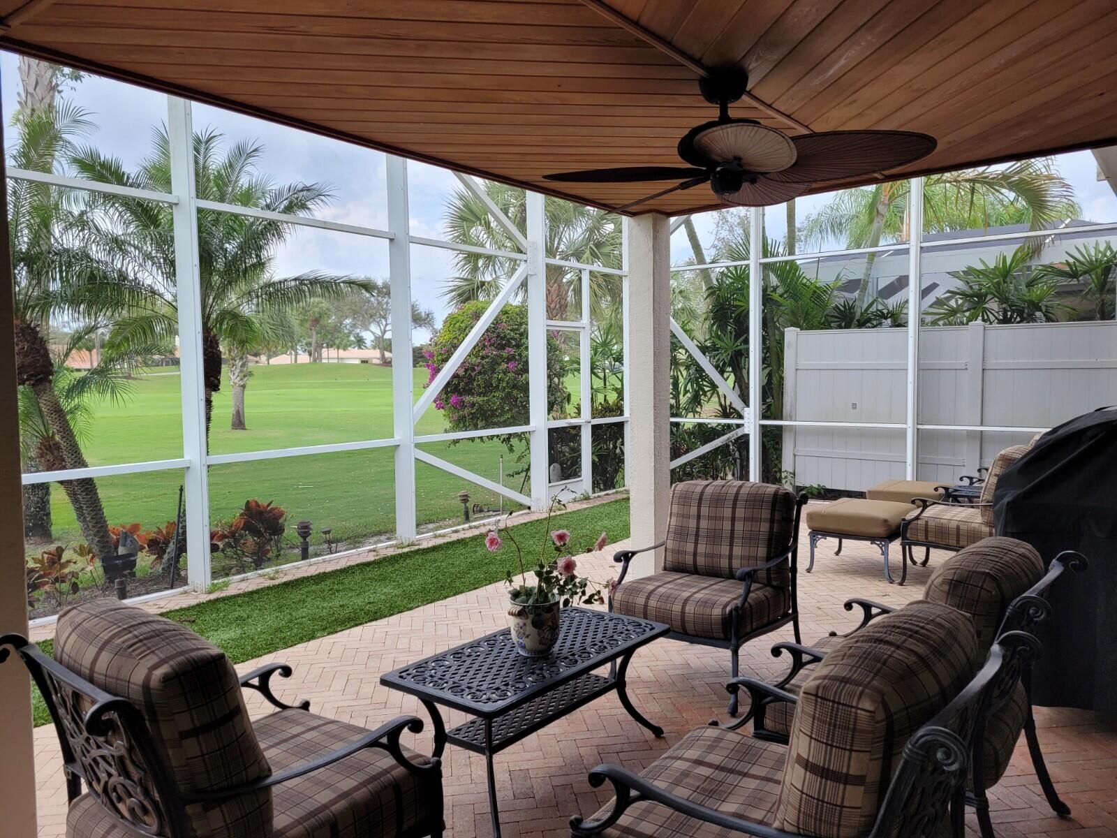 NEW LOWER PRICE AND NEW ROOF. Very large, covered and screened lanai located on the 9th hole of the Legend Golf Course. 3-bedroom, 3.1 bath home with office. Oversized master suite and separate office are located on first floor. Brand new master bathroom and updated 1/2 bathroom. Contemporary upgraded kitchen and family room. The 2nd floor has TWO large bedrooms each with their own full bath. Large loft area fitted with NEW cabinetry and tv. Outdoor living in the large screened in patio with access from master bedroom as well as family room. ALL KITCHEN APPLIANCES, HOT WATER HEATER AND A/C BETWEEN 3-5 YEARS OLD. WHOLE HOUSE WATER FILTER.