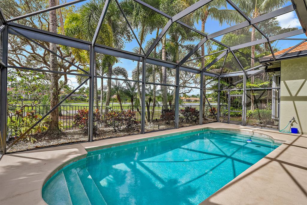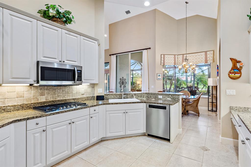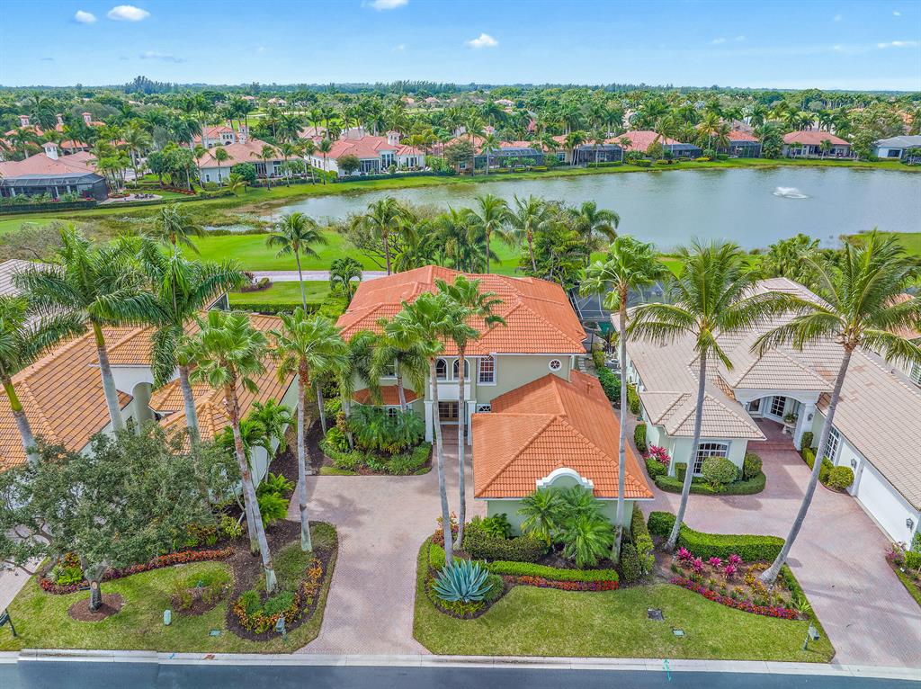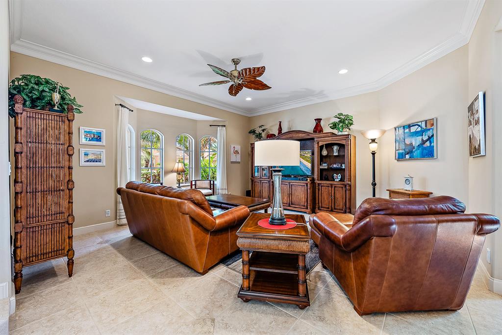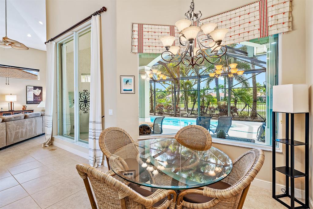 Soaring ceilings, architectural drama, generous upgrades inside and out, and golf and water views characterize this 'Serena' model in Monte Verde. With FIVE BEDROOMS and FOUR BATHROOMS, this appropriately priced, 3500 sq. ft. home overlooks Tradition #16 with golf and water vistas. Elegant double glass French front doors welcome you inside. Neutral and timeless tile flooring with tumbled stone inserts featured throughout the first floor (except bedrooms). Crown molding in the living and dining rooms + primary bedroom. Triple sliders in the family room bring you outdoors. Relax and unwind in the covered and fully-screened pool area that features redone landscaping, a new drainage system, and a New gas powered Pool Heater with warranty (December, 2020).