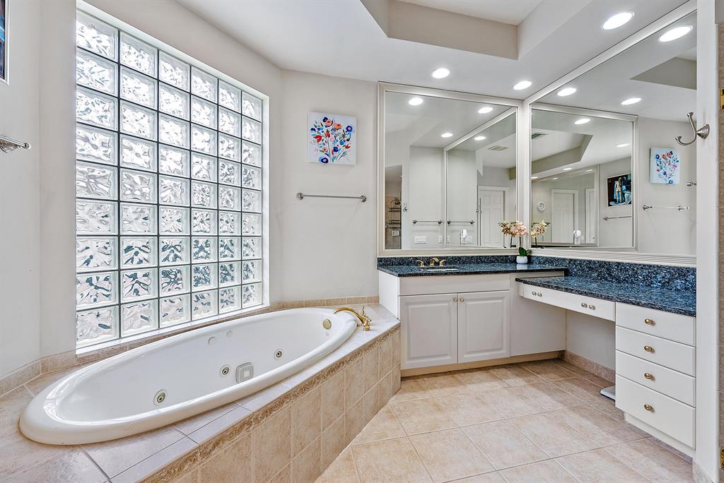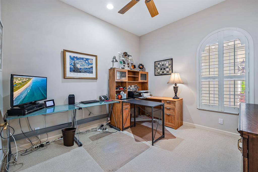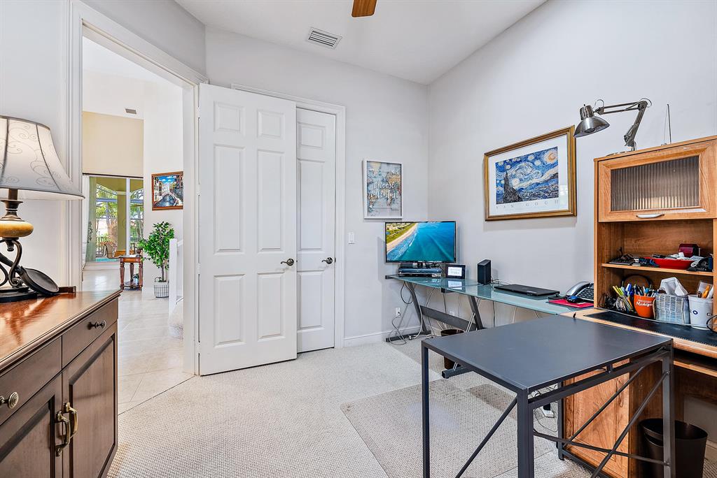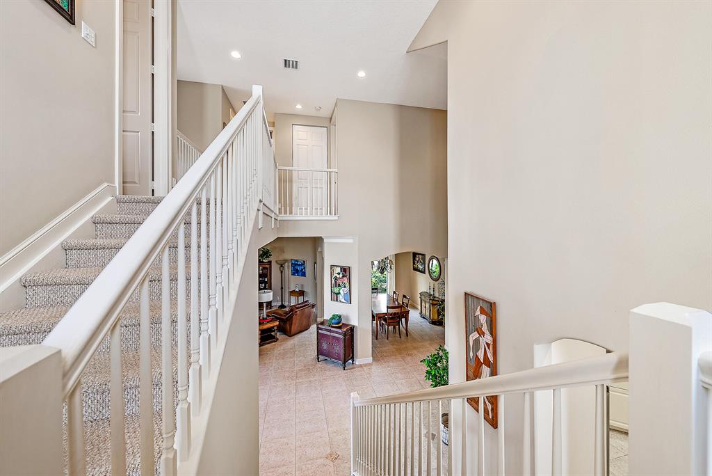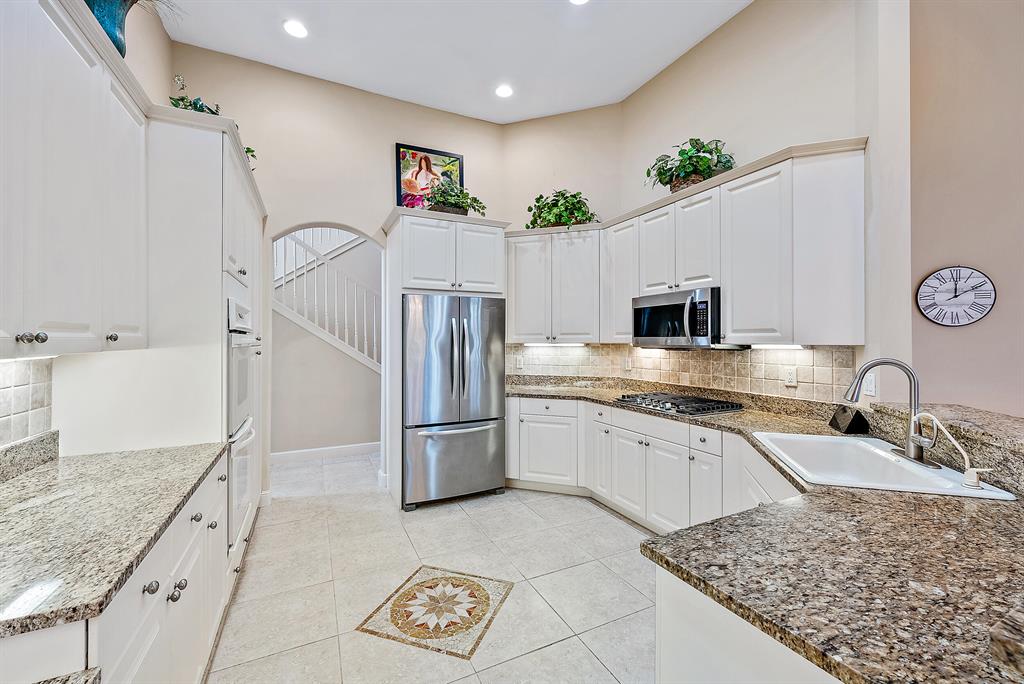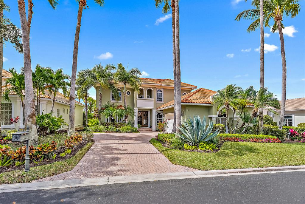 Soaring ceilings, architectural drama, generous upgrades inside and out, and golf and water views characterize this 'Serena' model in Monte Verde. With FIVE BEDROOMS and FOUR BATHROOMS, this appropriately priced, 3500 sq. ft. home overlooks Tradition #16 with golf and water vistas. Elegant double glass French front doors welcome you inside. Neutral and timeless tile flooring with tumbled stone inserts featured throughout the first floor (except bedrooms). Crown molding in the living and dining rooms + primary bedroom. Triple sliders in the family room bring you outdoors. Relax and unwind in the covered and fully-screened pool area that features redone landscaping, a new drainage system, and a New gas powered Pool Heater with warranty (December, 2020).