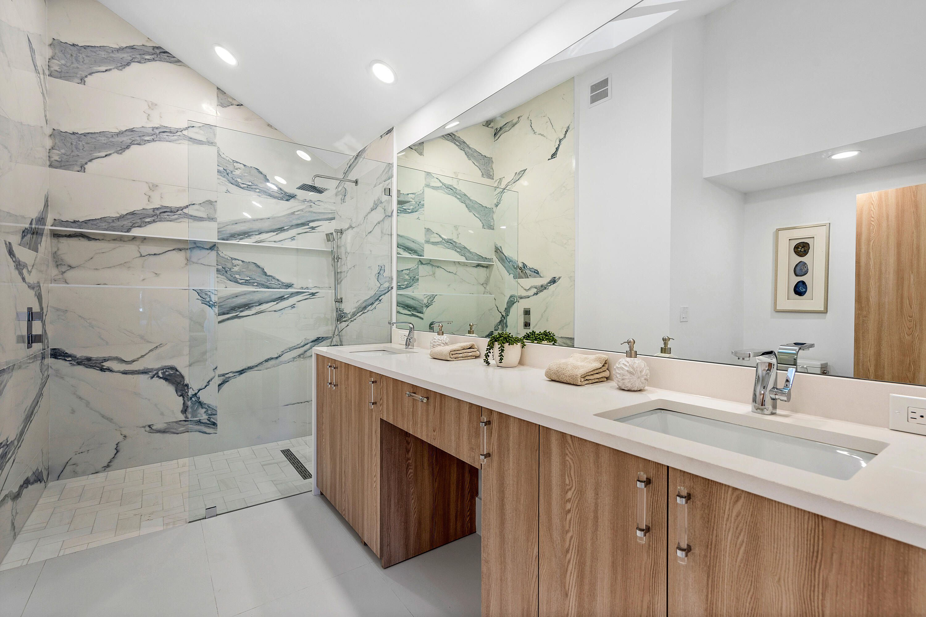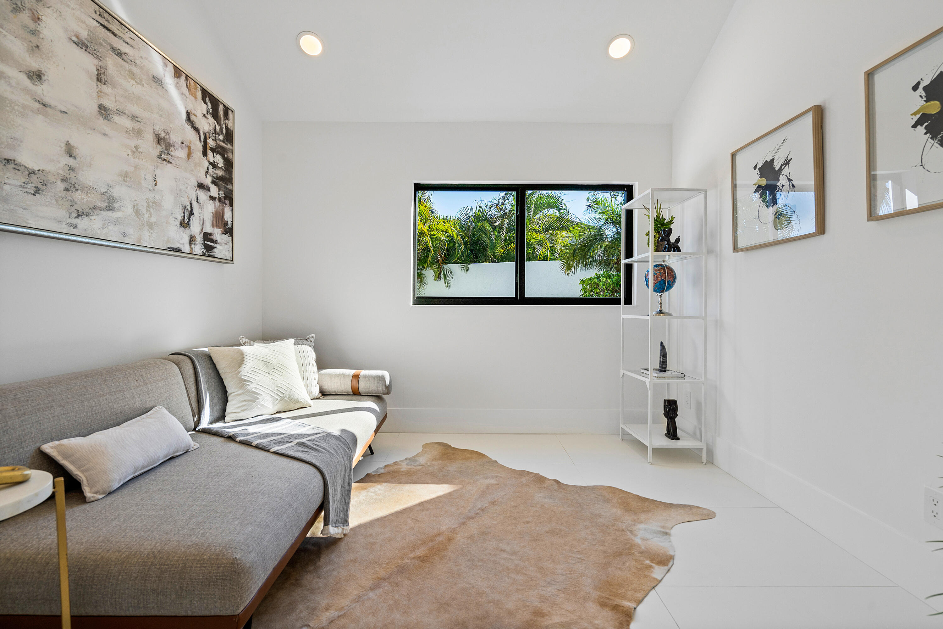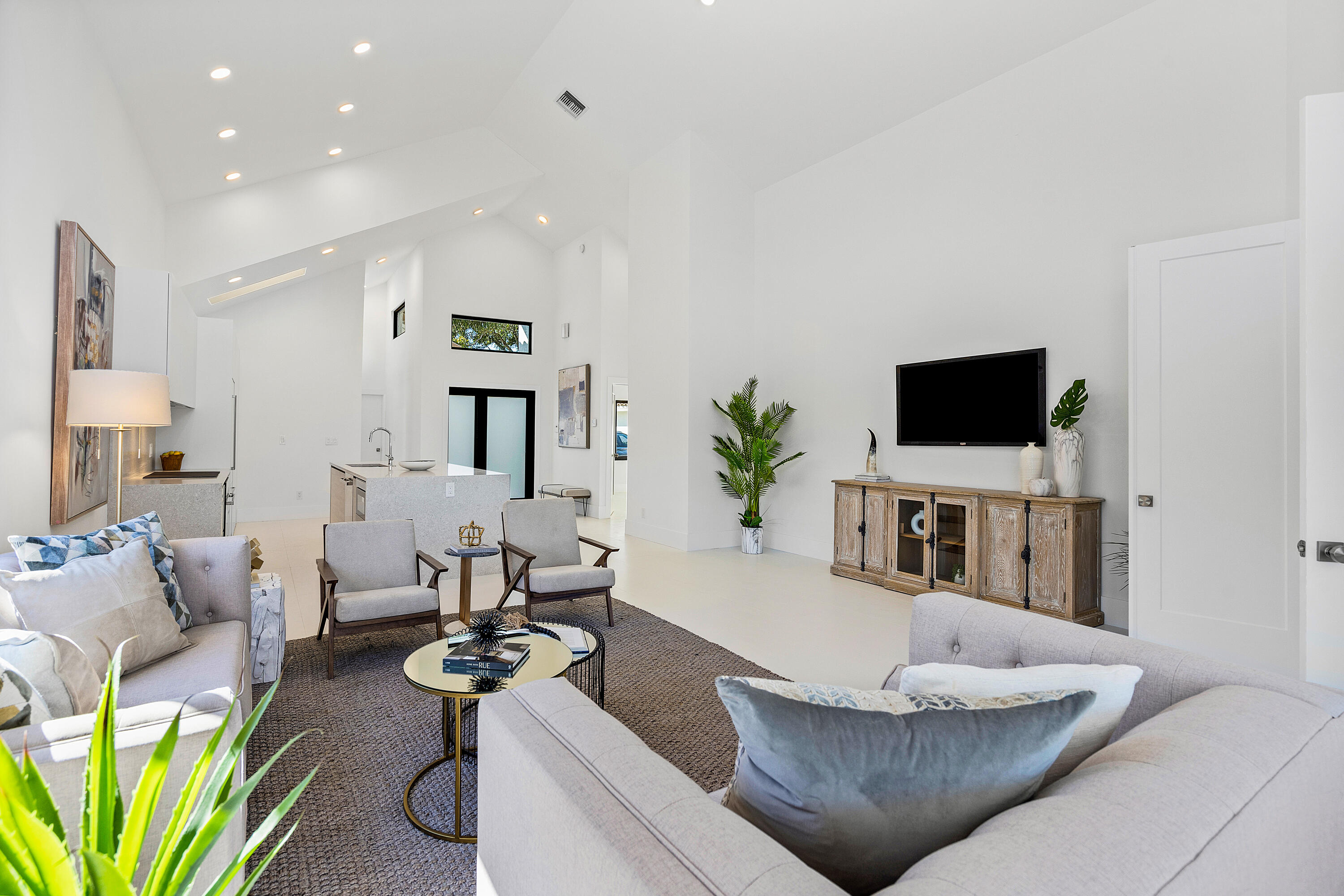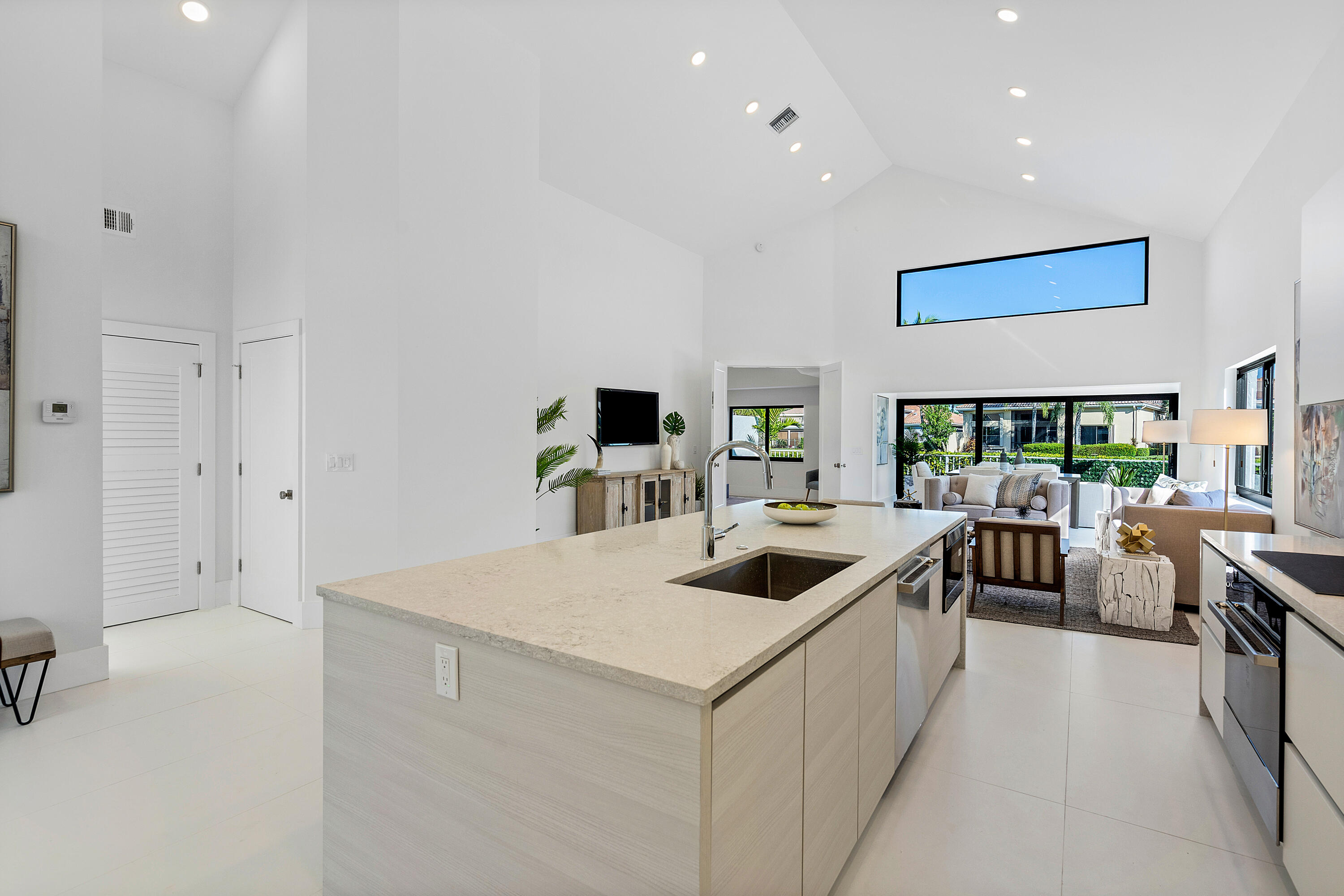 An impressive fully-renovated, single-story home awaits. With a sleek open concept design, this light and bright contemporary home is inviting and warm. In the kitchen, an oversized island is the focal point. Volume ceilings in the living room provide a comfortable spot to entertain. Connected seamlessly to the living space is the dining room that enjoys the beautiful lake and golf views. The primary suite offers the same beautiful views and dual closets. The spa-like primary bathroom has dual sinks and an oversized shower. Two additional bedrooms share a beautiful full bathroom. Outside, your private pool is a great setting to relax and enjoy the oversized corner lot. As an added bonus, full impact glass protection is throughout the home.