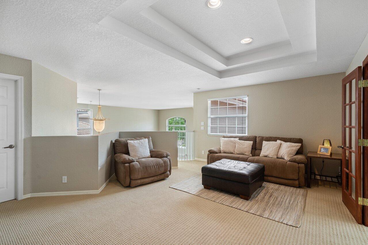 Stunning renovated convertible 5 BEDROOM, 4-bedroom home, plus a HUGE office and additional HUGE loft, in 24/7 gated community w/ clubhouse & pool. Spectacular landscaping. This house on the lake has amazing views was made for entertaining. High volume ceilings in the living & dining rooms. Beautiful kitchen cabinets, quartz counters with center island & double wall ovens. The master suite is located on the 1st floor as it should be. Impact glass throughout. This home is GORGEOUS.
