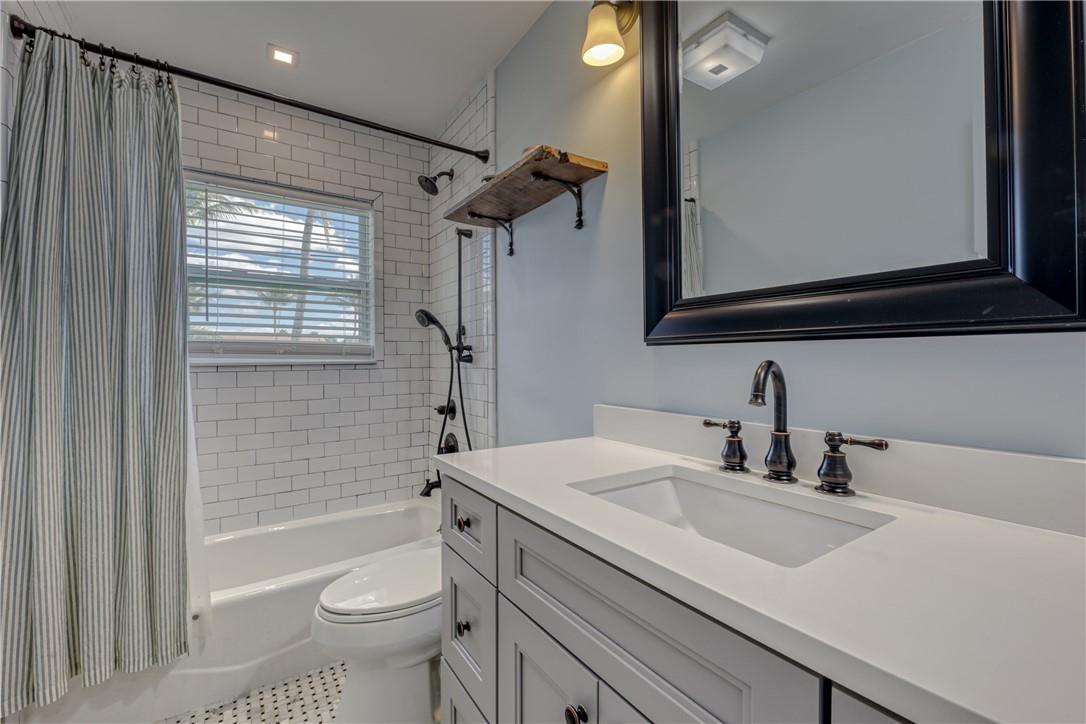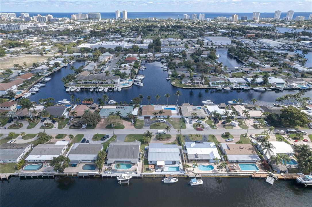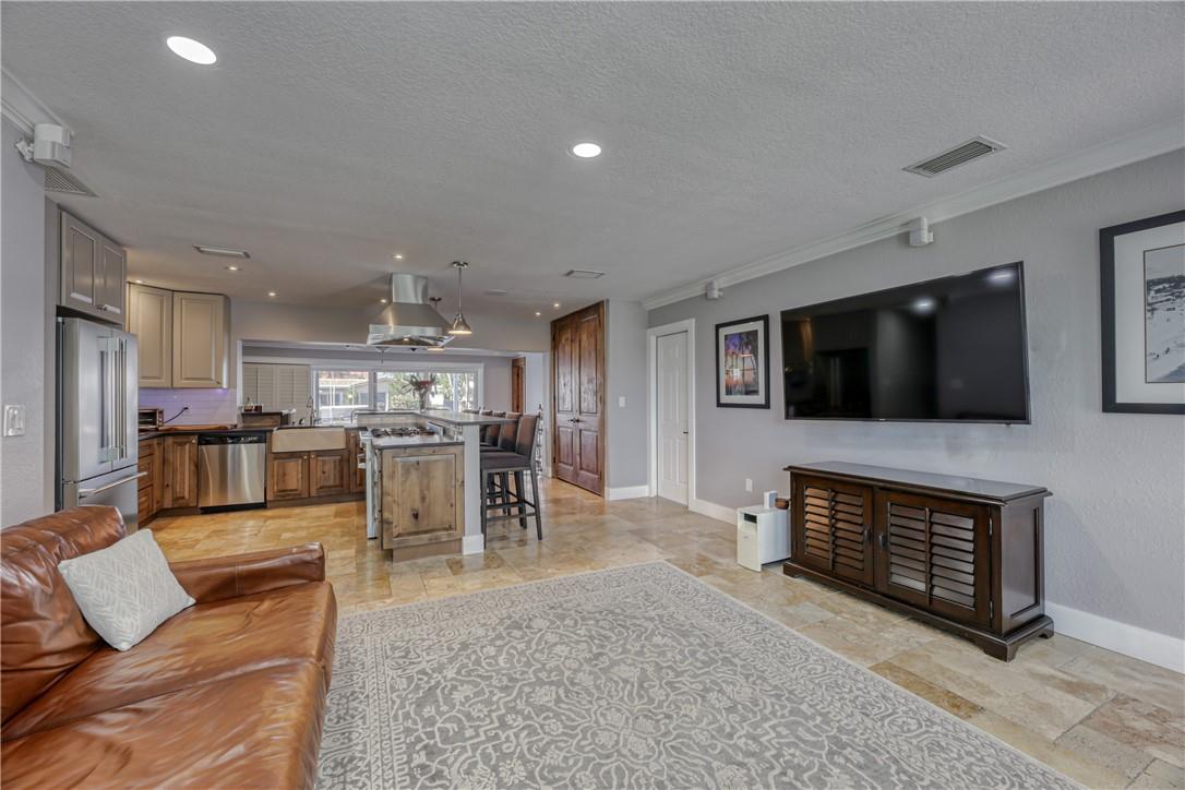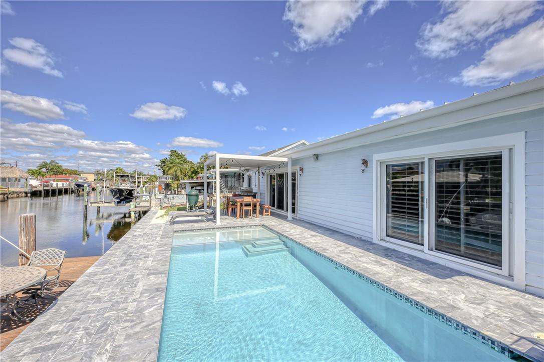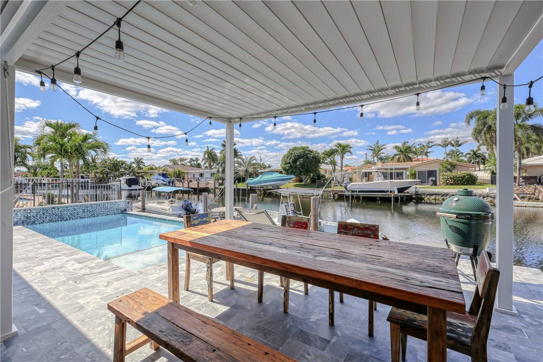 SNUG HARBOR: Situated on 70 feet of water, this home features 4 bedrooms, 2 bathrooms, 1 car garage, pool & is fully remodeled! Only 1 bridge at Federal Highway. Travertine floors throughout, recessed lighting, Plantation shutters, crown molding+++. Open kitchen has bar seating for 6, stainless appliances, leathered granite, built in pantry, 6 burner gas stove & more! Multiple living areas including dining & family room offer great space & wonderful water views. Spacious master w/ walk in closet, sliders to the pool, large shower & double vanity. Fenced yard, custom pergola, large covered patio, heated salt pool. Fully upgraded w/ impact windows & doors, upgraded electrical, metal roof 2022, AC 2022. All ages, no HOA, rentals OK. Enjoy waterfront living at its finest!