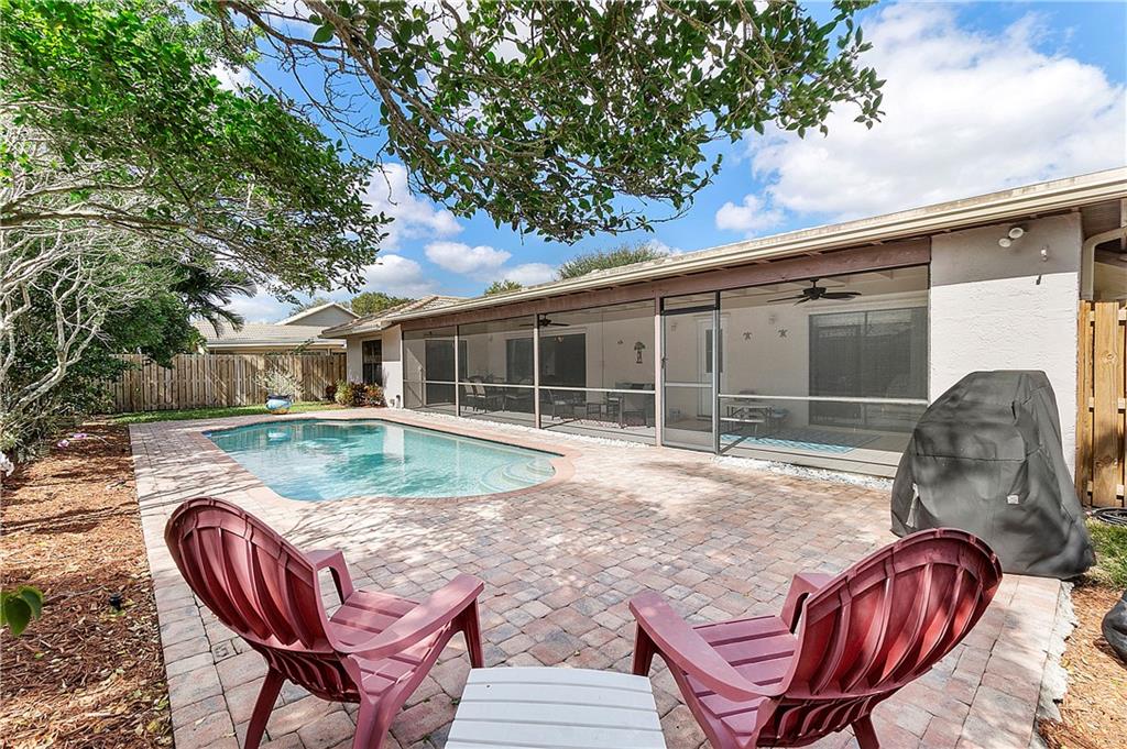 Absolutely Beautiful 4 BR 2 BA Pool Home with NEW KITCHEN and NEW BATHROOMS! Open, Flexible Floor Plan with Triple Sliders opening to Huge Covered, Screened Patio with Summer Kitchen! Kitchen updated 2021 offers New SS Appliances, White Cabinets with Quartz Counters, Pull Out Pantry Shelves, Deep Drawers for Pans, Soft Close and Lazy Susan's. Primary and Guest Bath updated 2020 with New Cabinetry and Quartz Counters. Neutral Tile throughout Living Area. Open Pool with Baby Fence and Paver Patio plus New Fence, 2020! Roof Replaced 2015. Two A/C Units, Bedroom A/C Replaced 2021. Primary and 2 Guest Bedrooms have Closet Organizers. Full Set of Hurricane Panels, 2005. New Hurricane Impact Front Door & Impact Garage Door, 2020. Interior Laundry Room with W/D & Cabinets. Walk to Cypress Park.